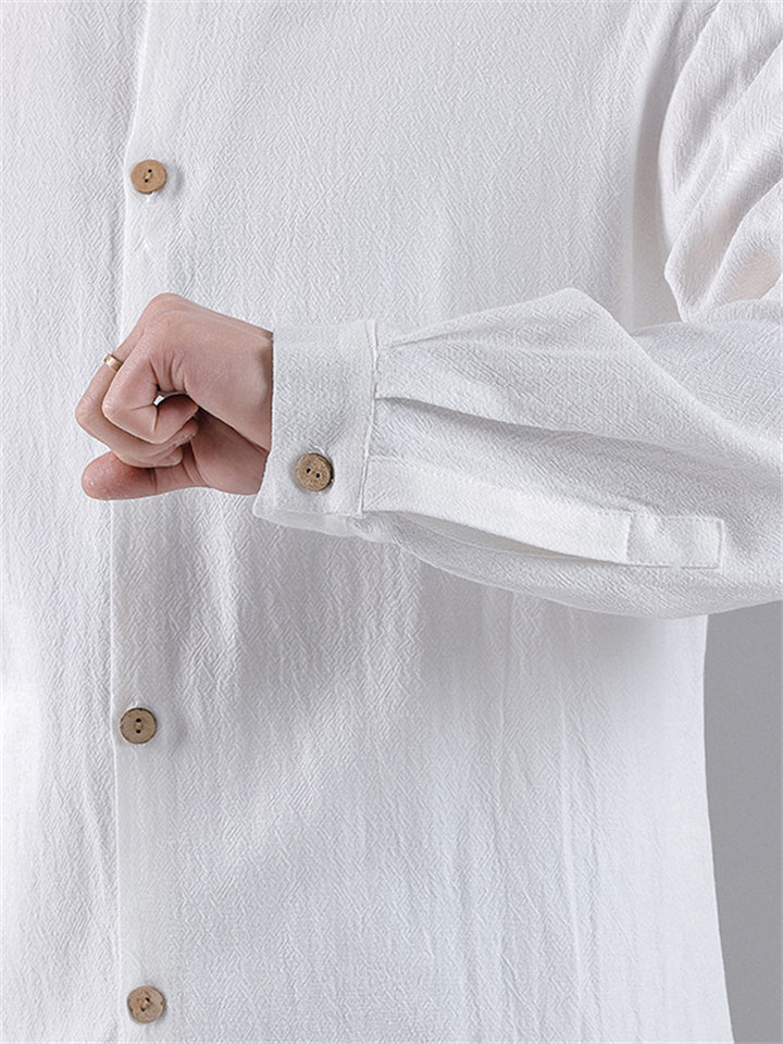 Men's Autumn Zen Style Solid Color Long Sleeve Shirts