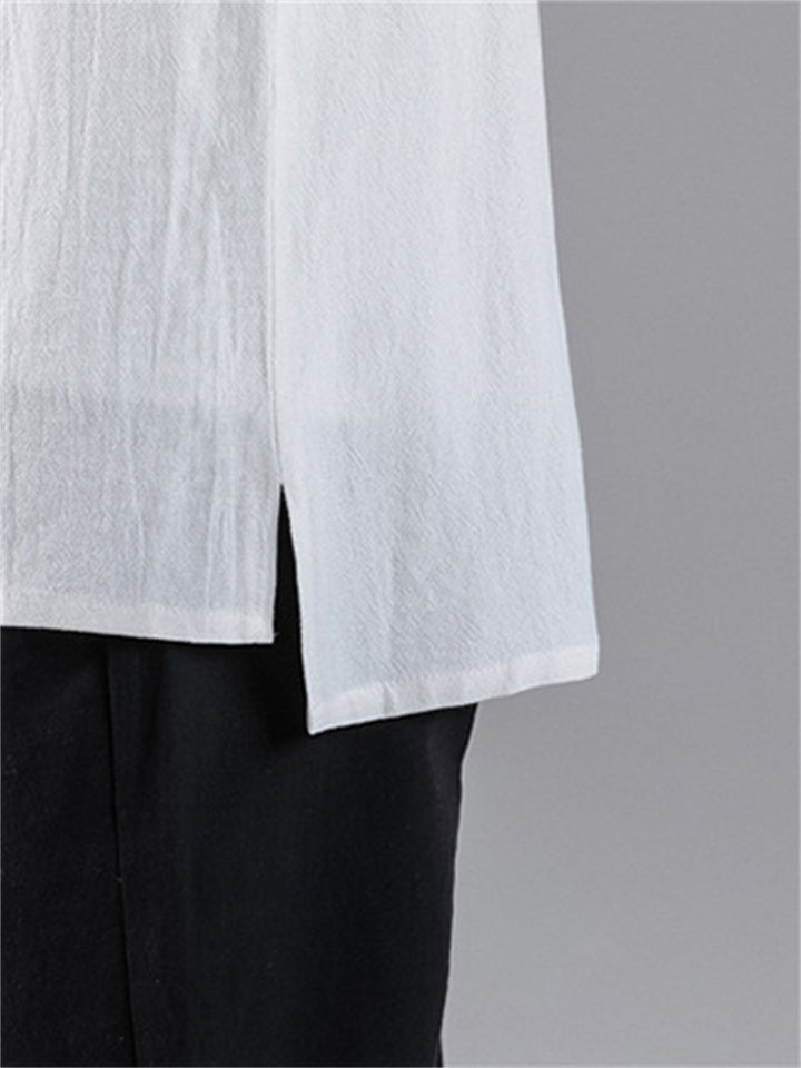 Men's Autumn Solid Color Zen Style Pullover Long Sleeve Shirts