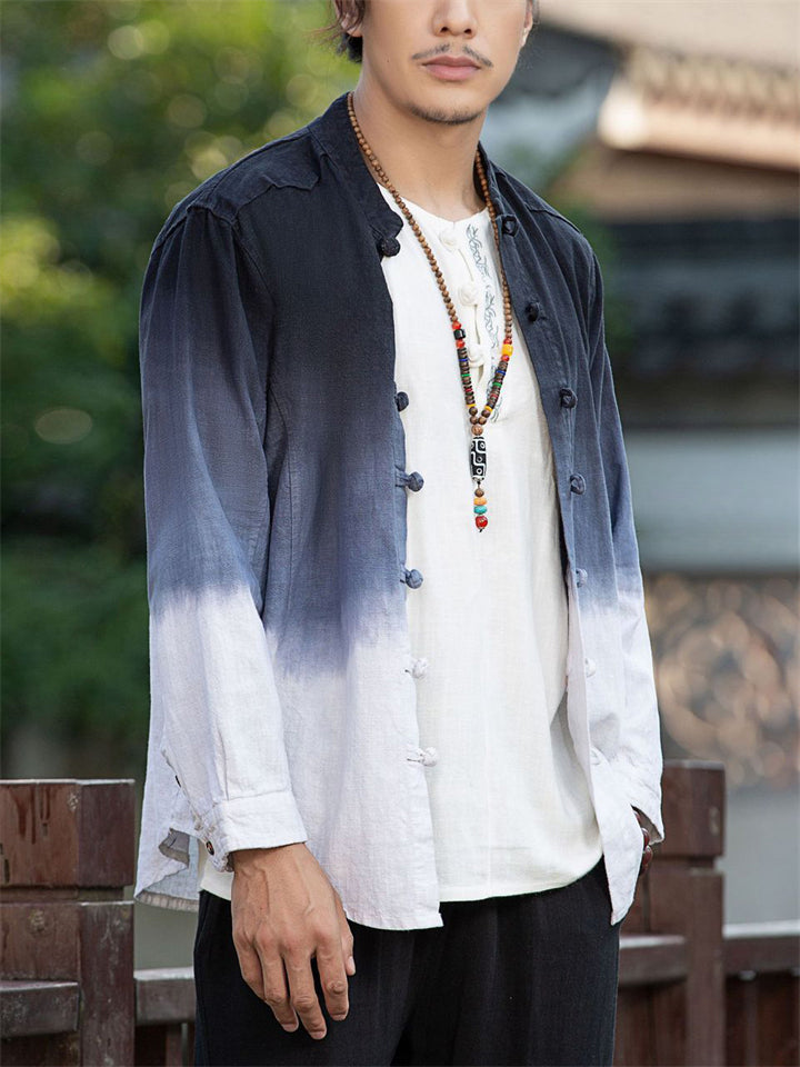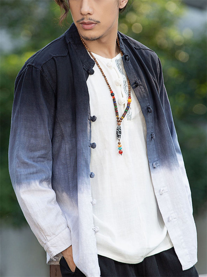 Men's Casual Linen Tie-dye Contrast Color Long Sleeve Shirts