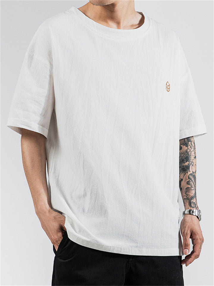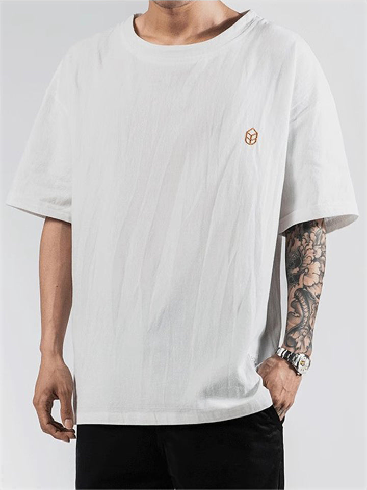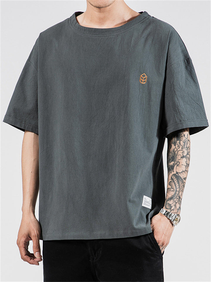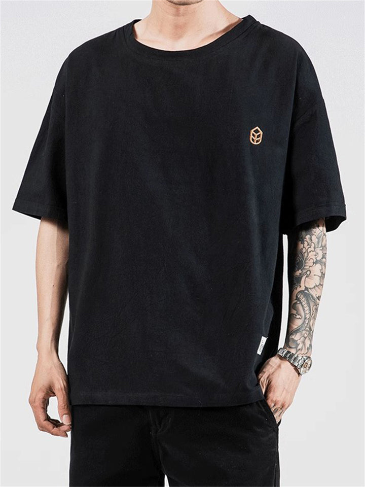 Men's Casual Solid Color Embroidery Loose Short Sleeve T-Shirt