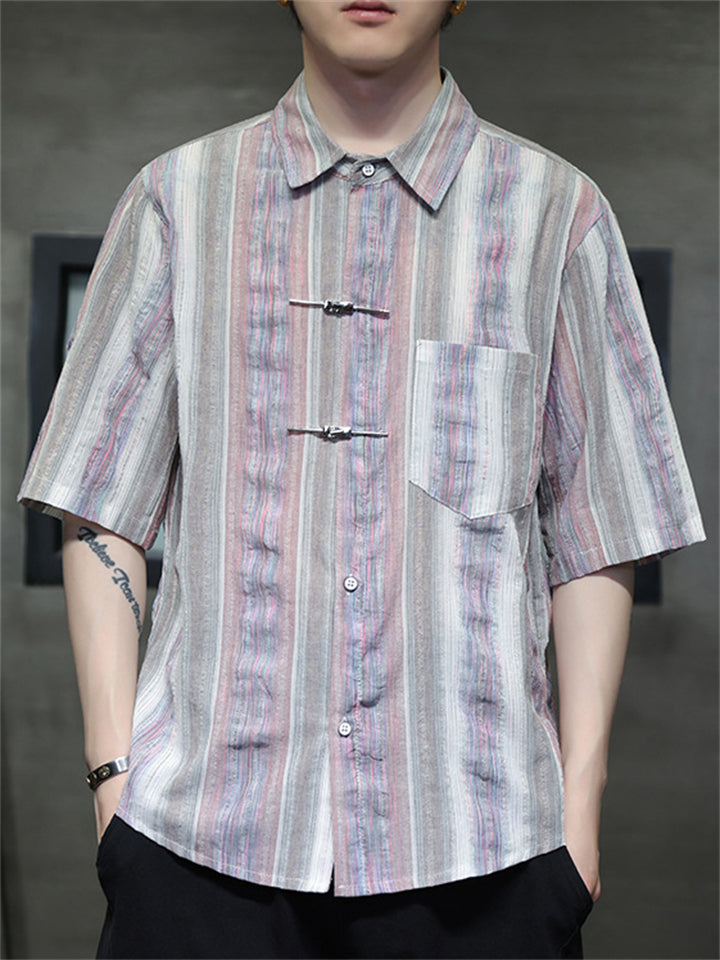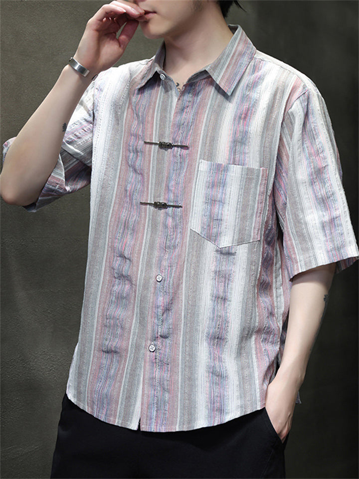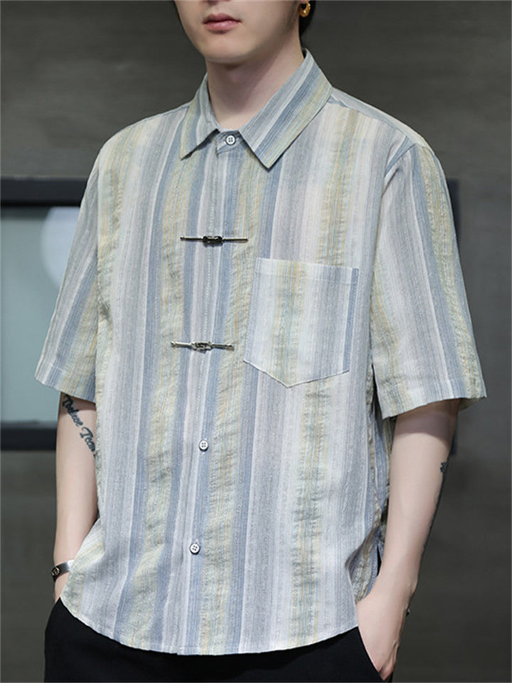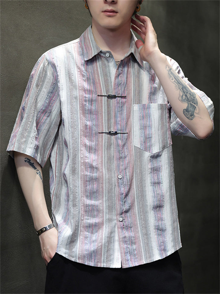 Men's Causal Summer Stripe Lapel Short Sleeve Shirts