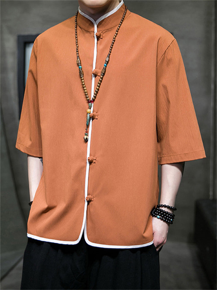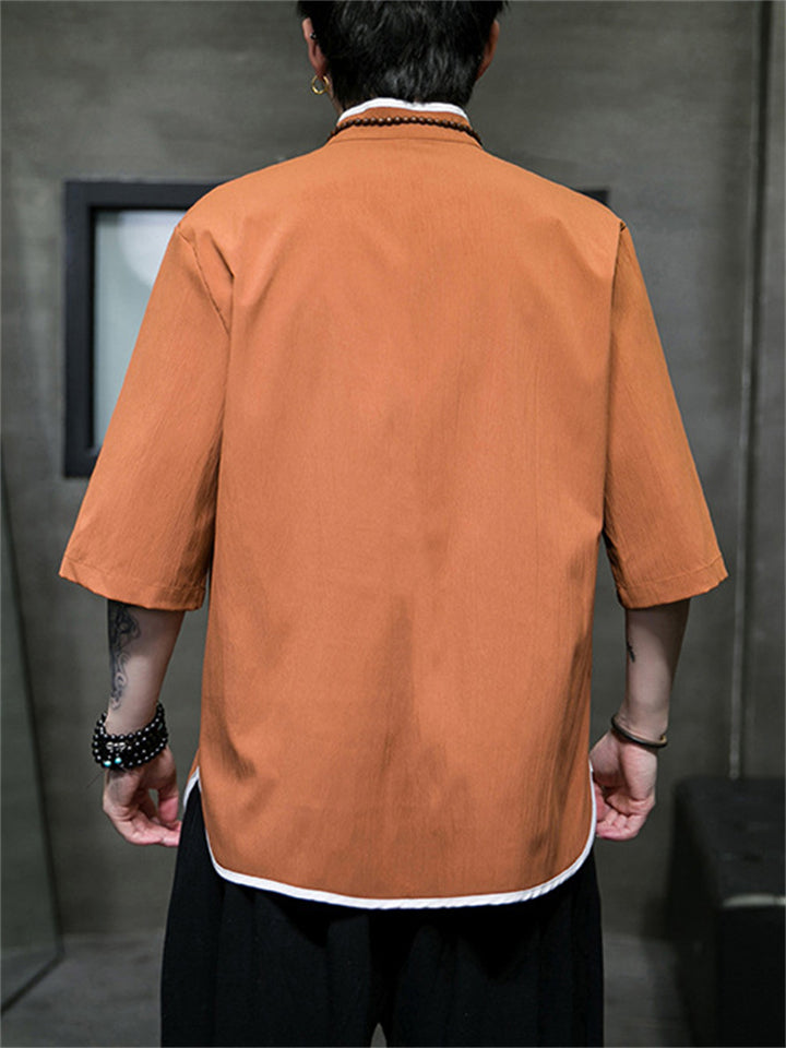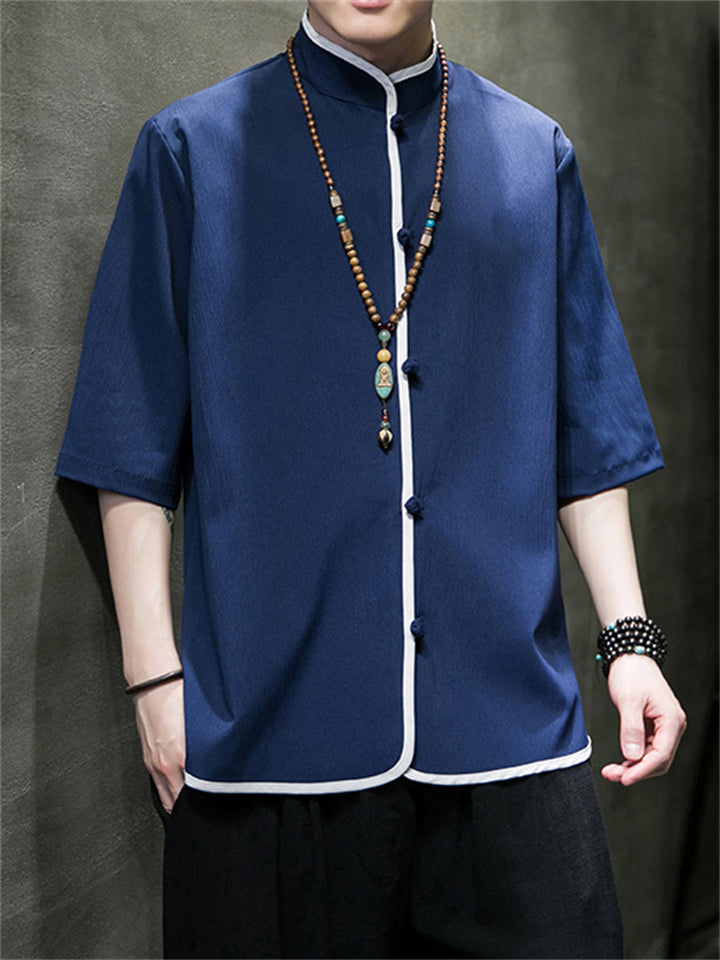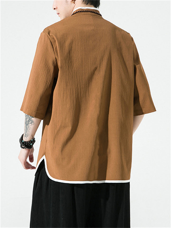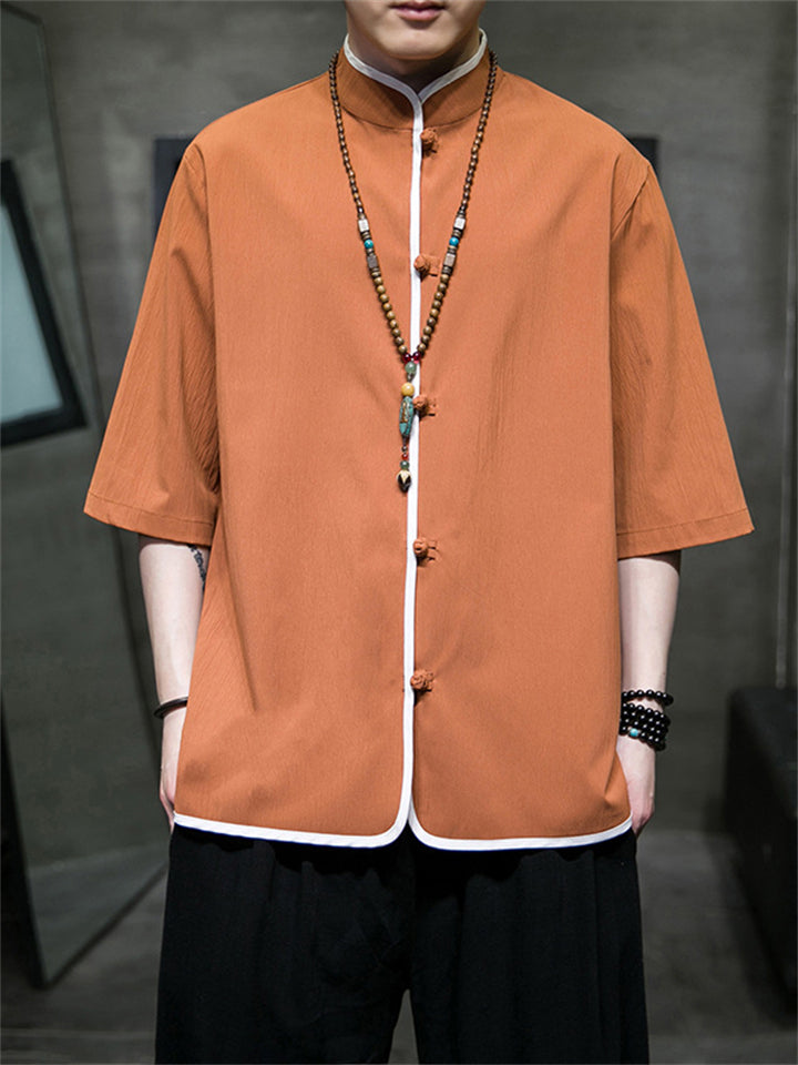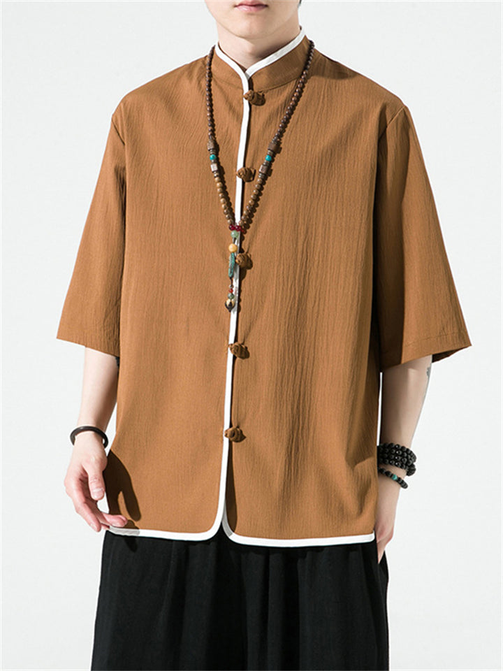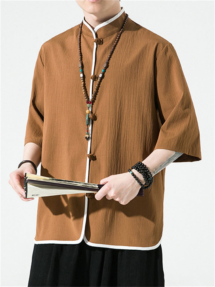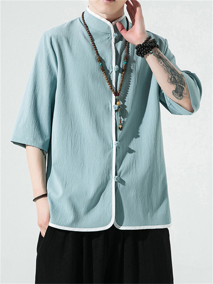 Men's Vintage Summer Solid Color 3/4 Sleeve Stand Collar Shirts