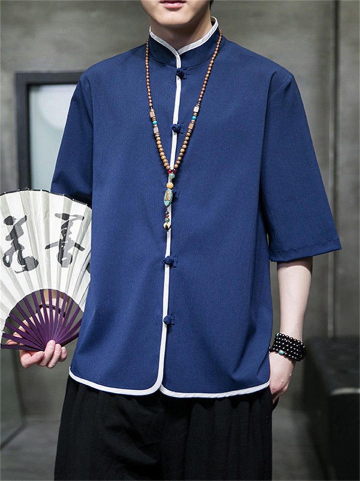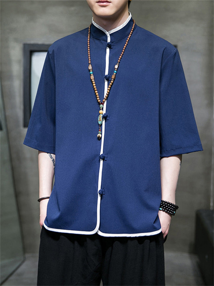 Men's Simple Chinese Style Ramine Stand Collar Tangsuit Shirts