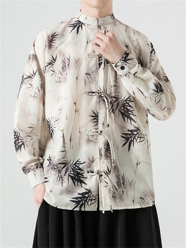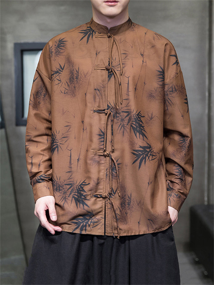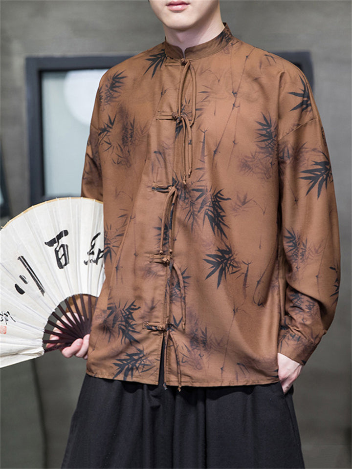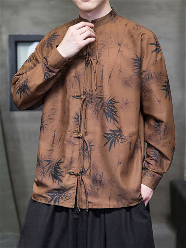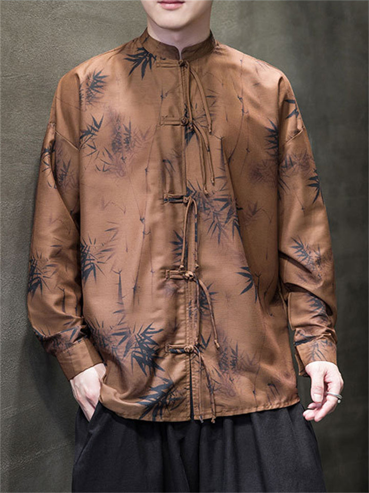 Men's Autumn Vintage Chinese Style Printed Frog Button Tangsuit Shirts