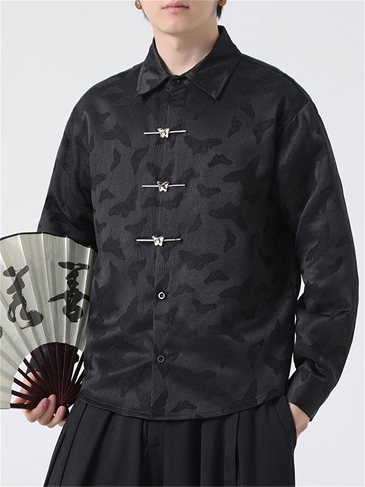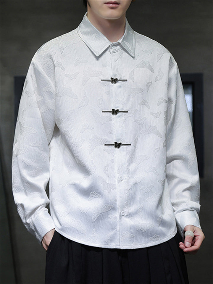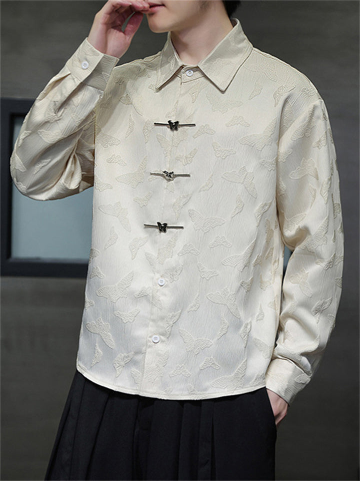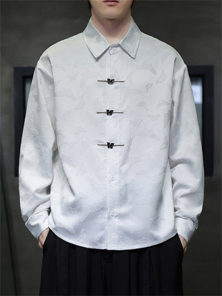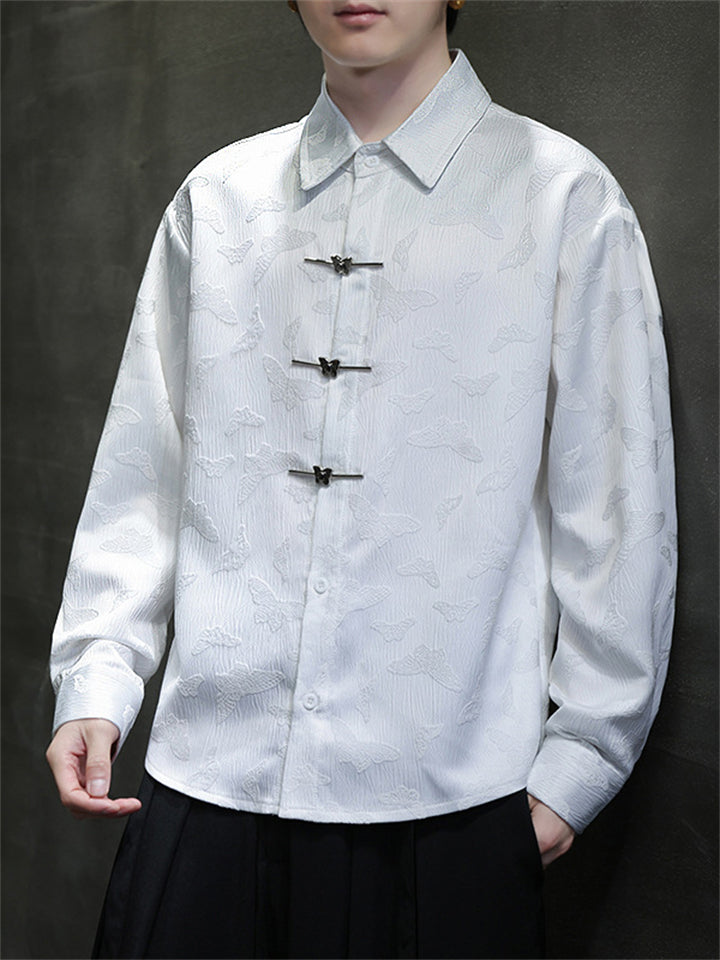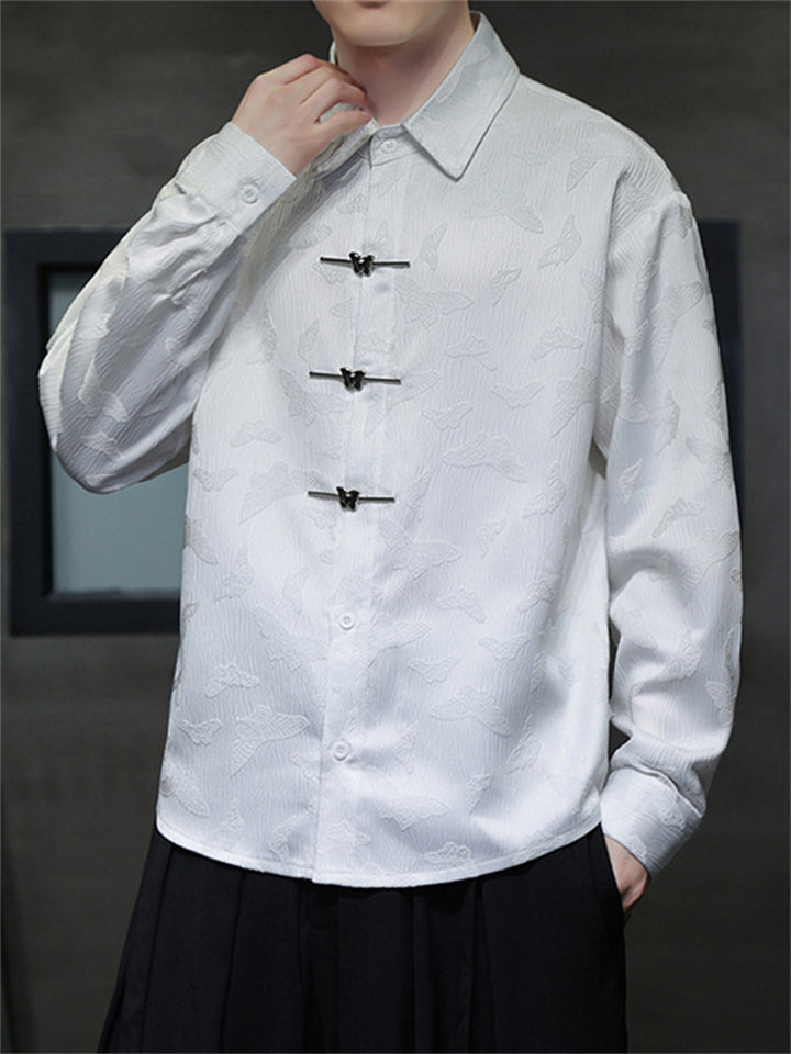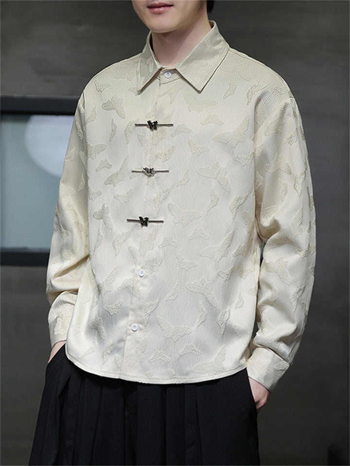 Men's Chinese Style Butterfly Buckle Jacquard Spring Shirt
