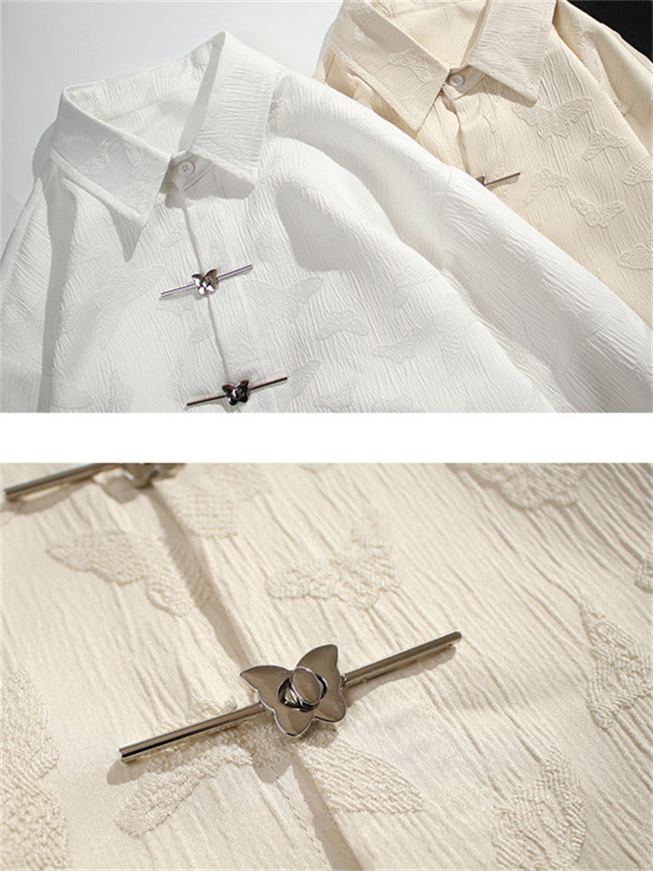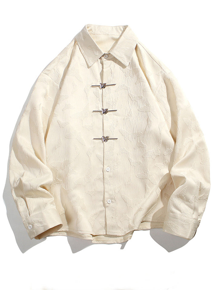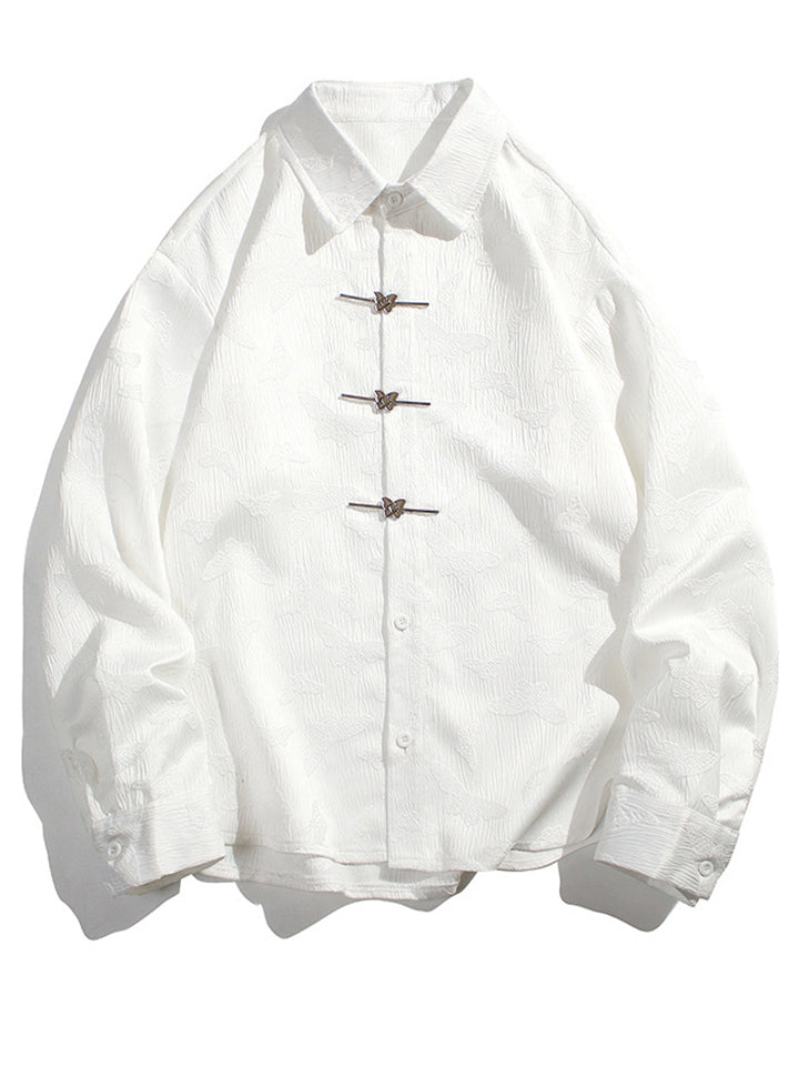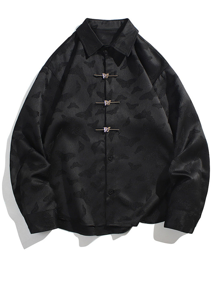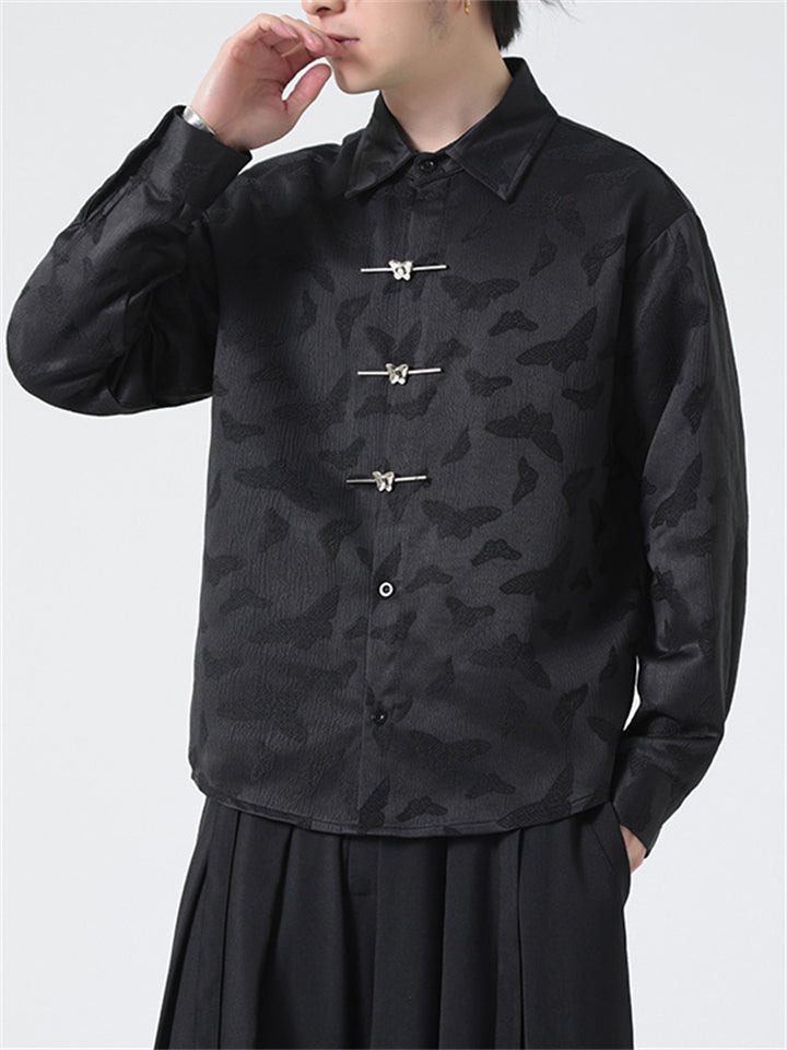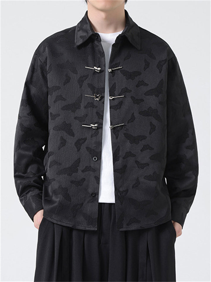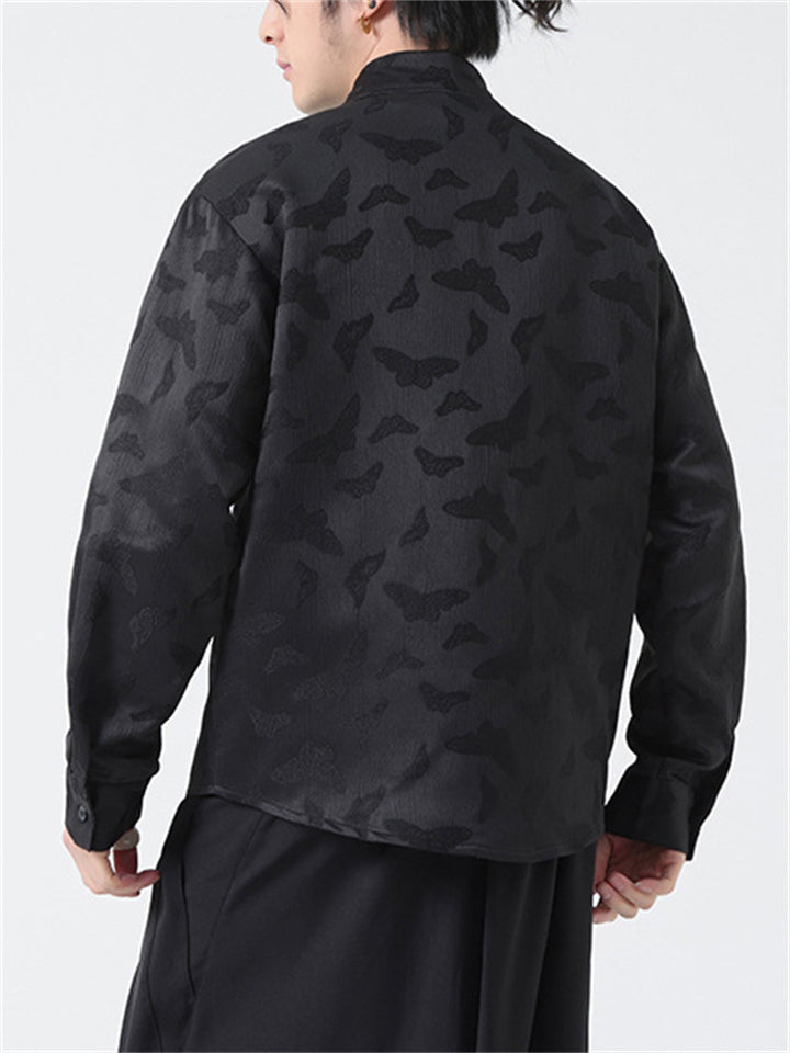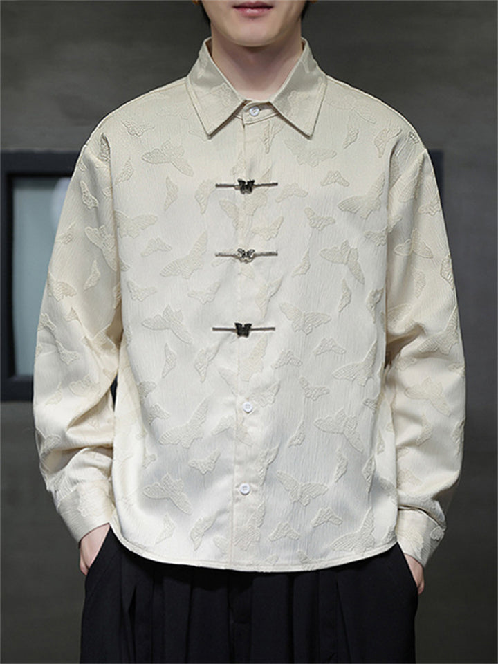 Men's Chinese Style Butterfly Buckle Jacquard Spring Shirt