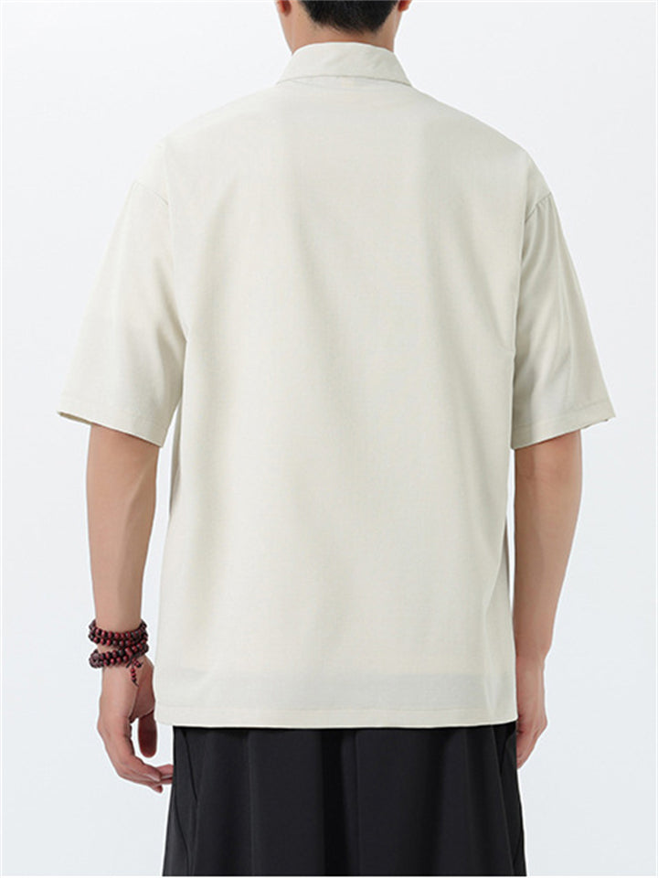 Men's Simple Chinese Style Ramine Stand Collar Tangsuit Shirts