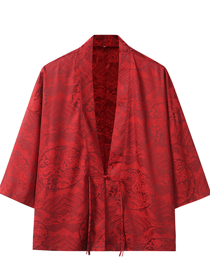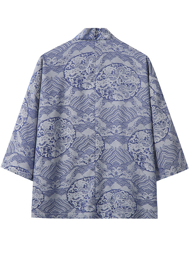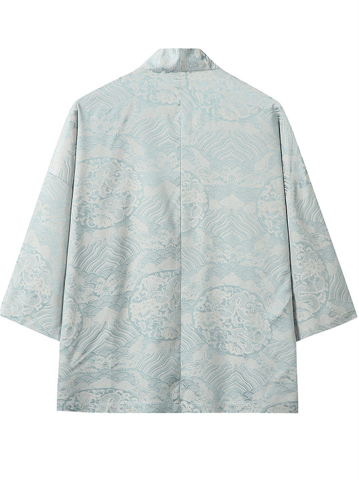 Men's Chinese Style Loong Jacquard Zen Style Half Sleeve Cardigan