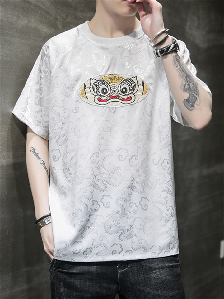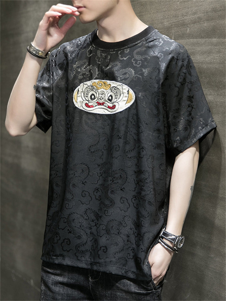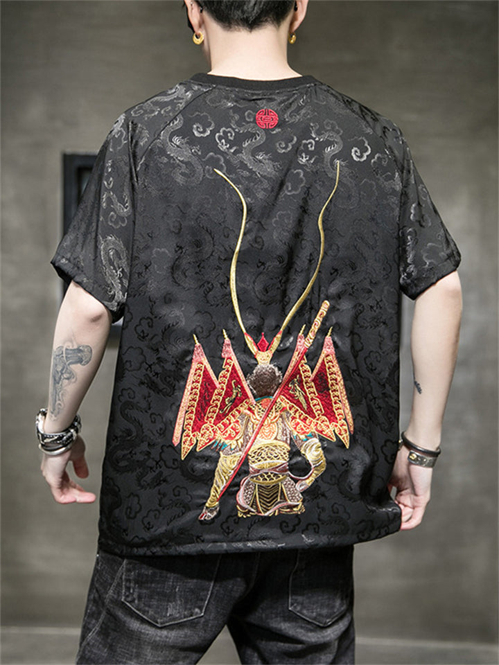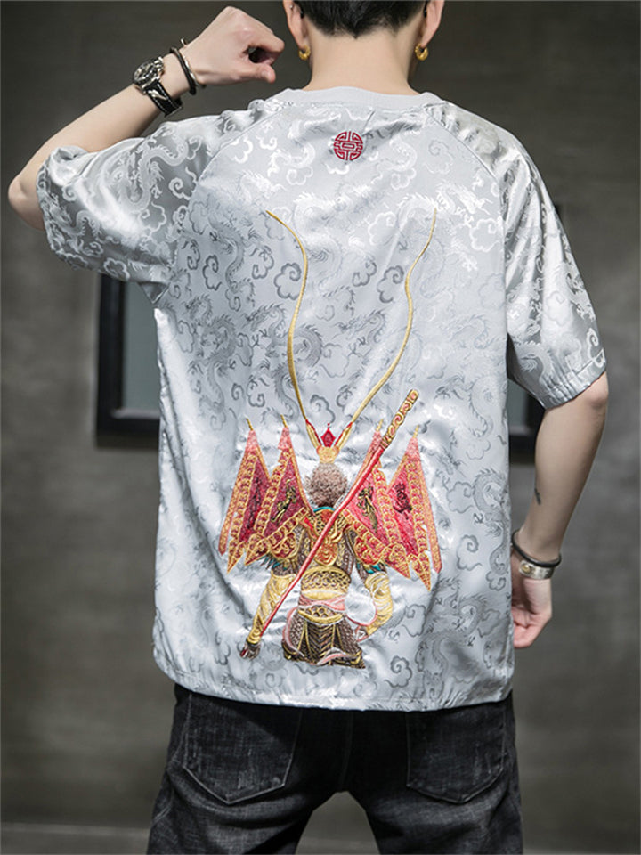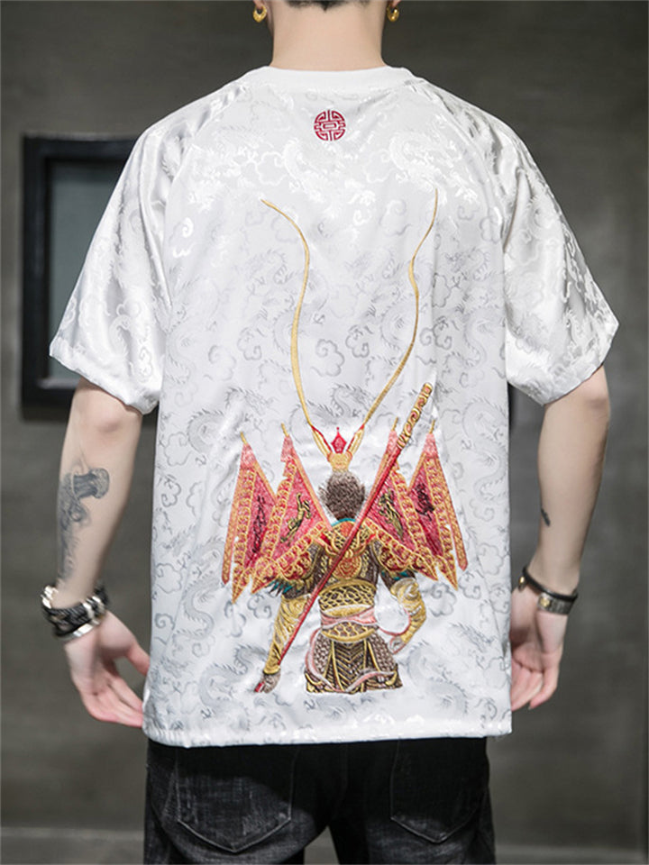 Men's Chinese Style Monkey King Embroidery Retro T-shirt