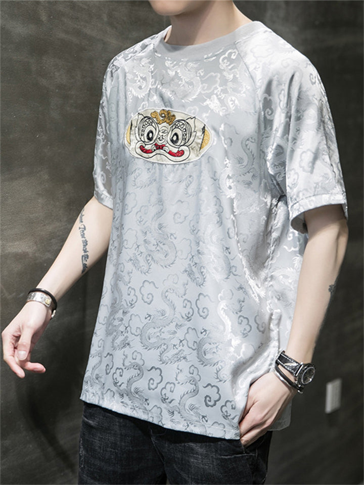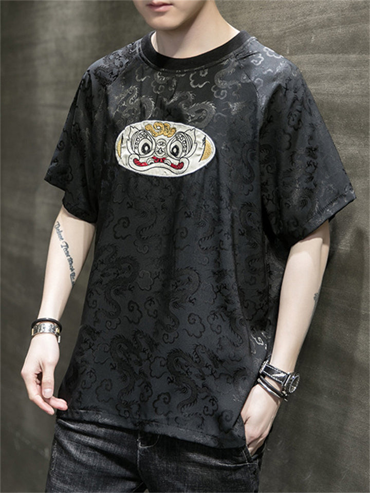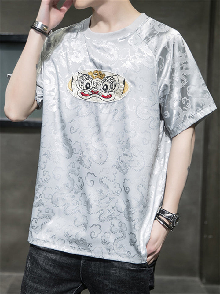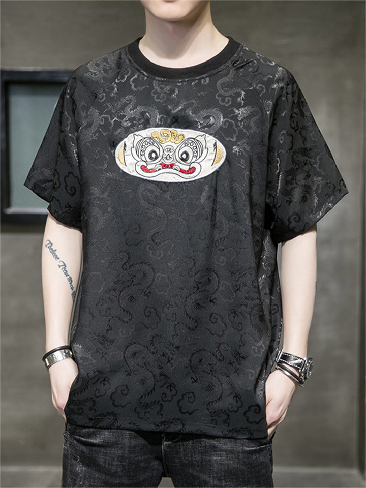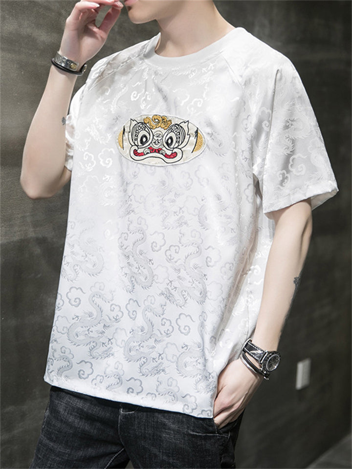 Men's Chinese Style Monkey King Embroidery Retro T-shirt