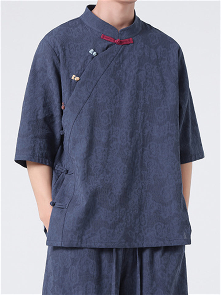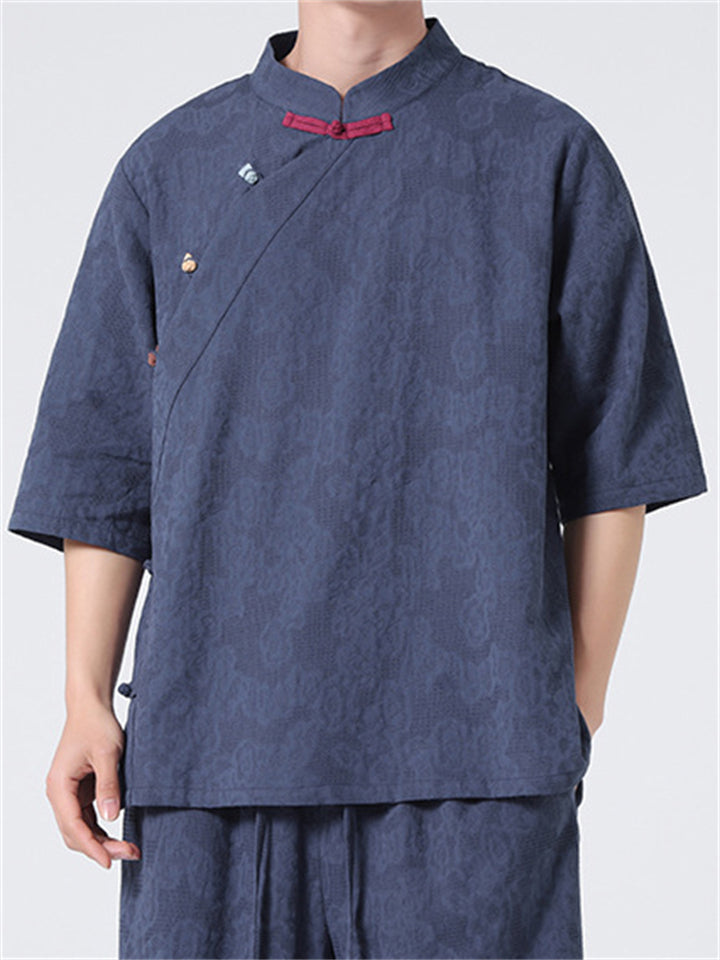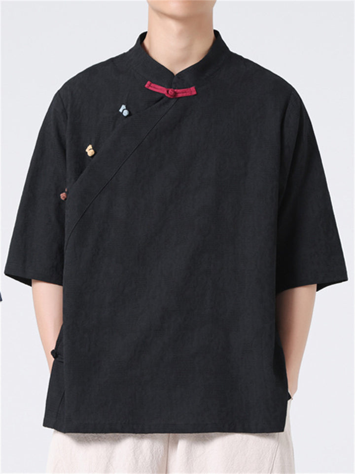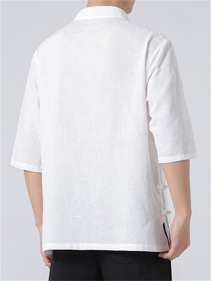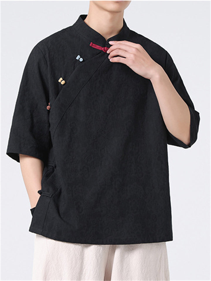 Men's Vintage Summer Solid Color 3/4 Sleeve Stand Collar Shirts