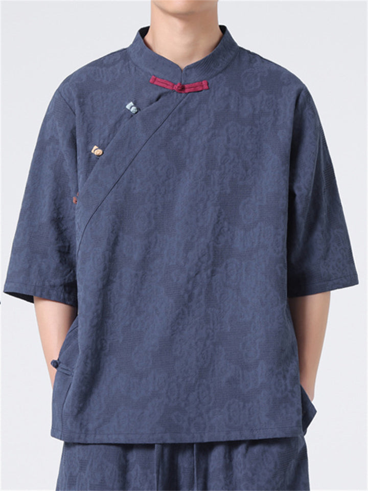 Men's Chinese Style Retro Stand Collar Short Sleeve Shirts
