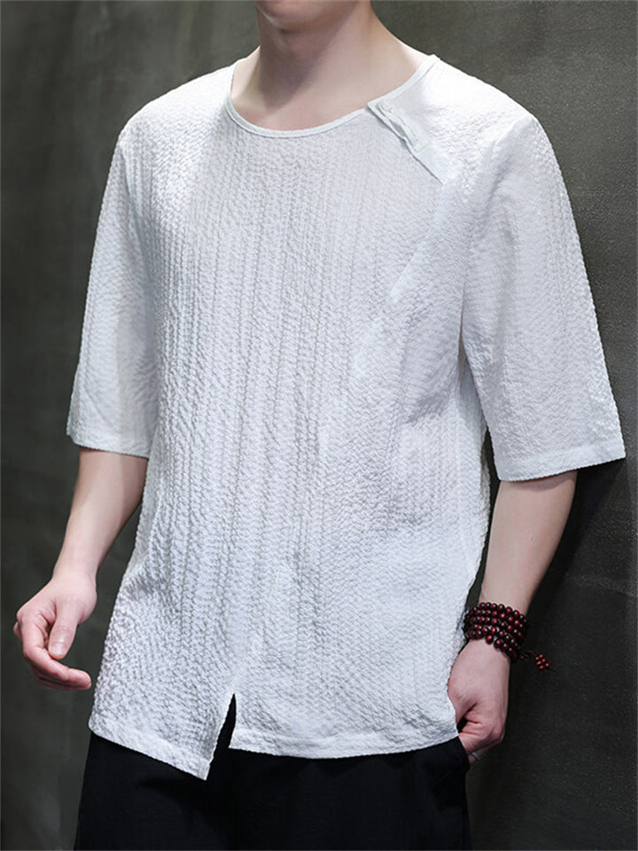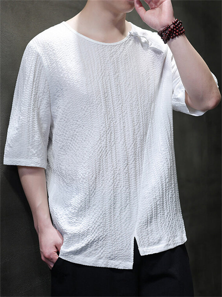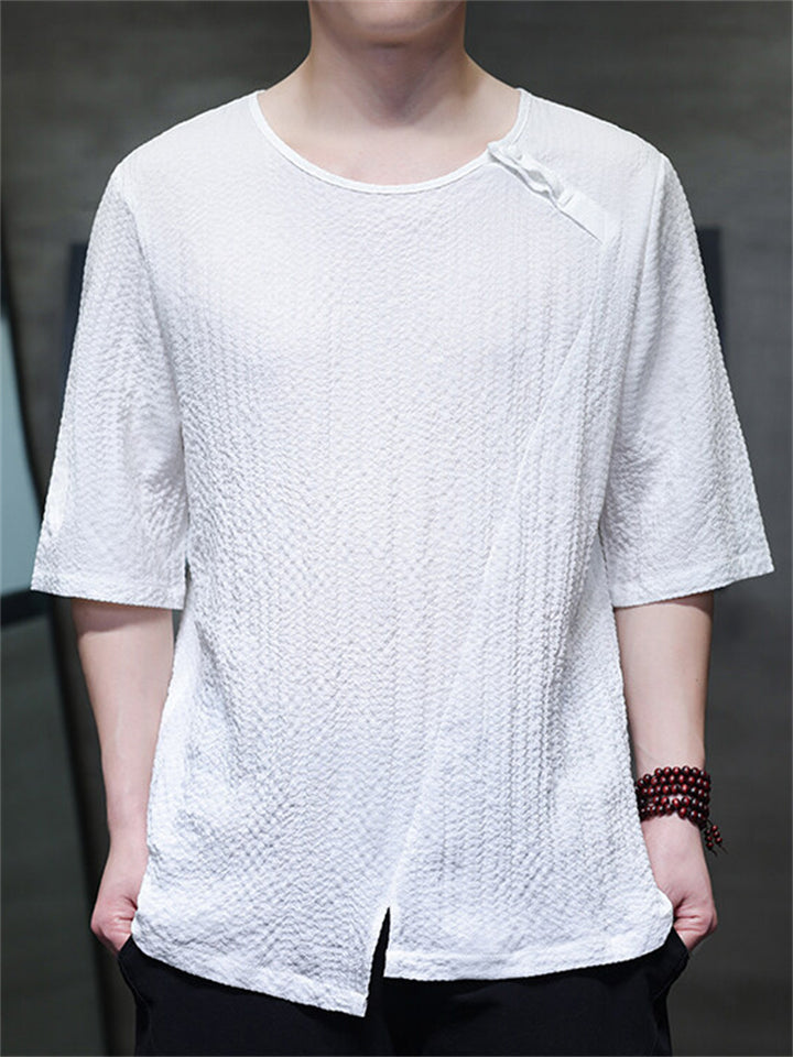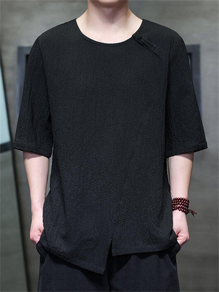 Men's Chinese Style Solid Color Asymmetric Hem Short Sleeve Shirts