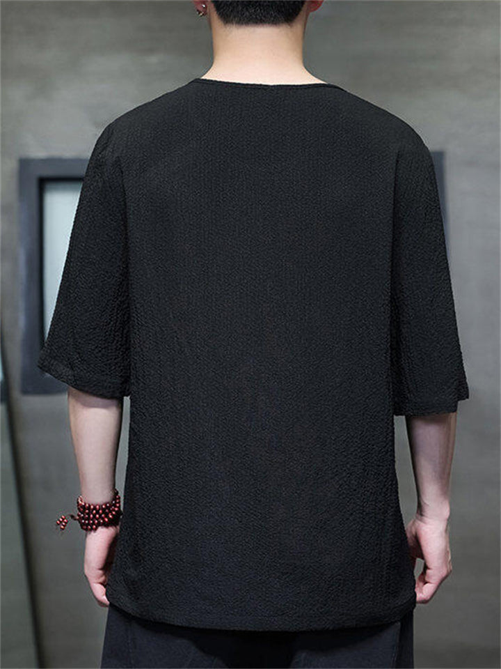 Men's Vintage Summer Solid Color 3/4 Sleeve Stand Collar Shirts