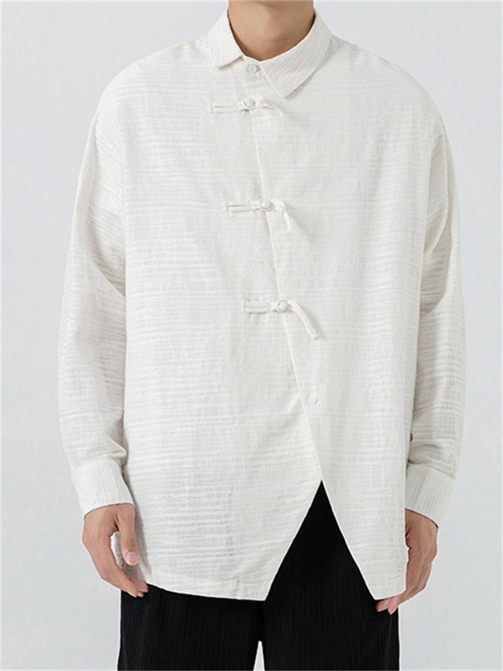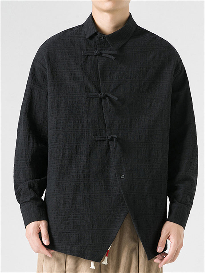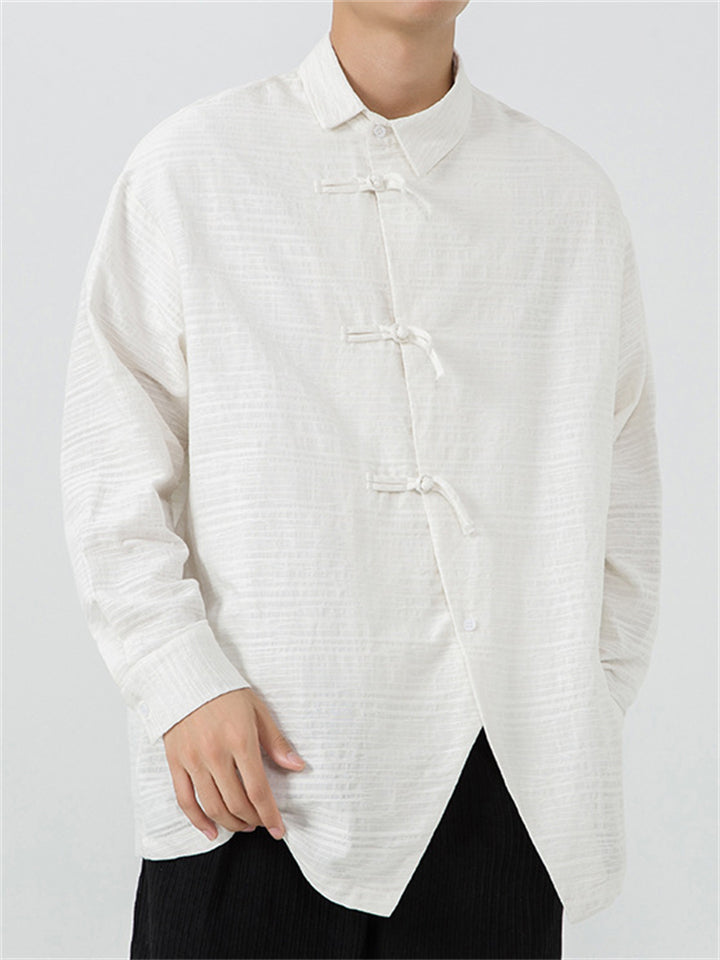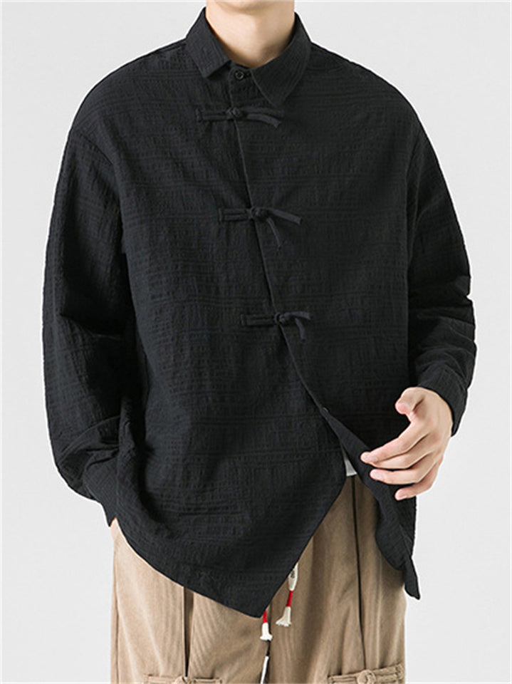 Men's Chinese Style Solid Color Frog Button Lapel Shirts