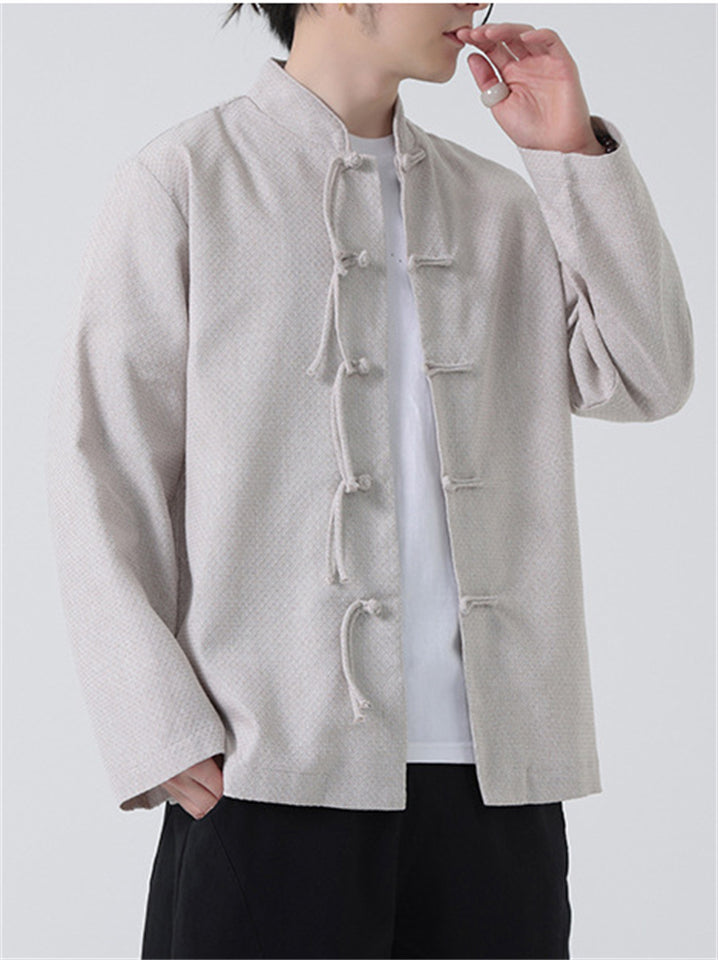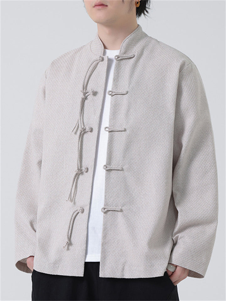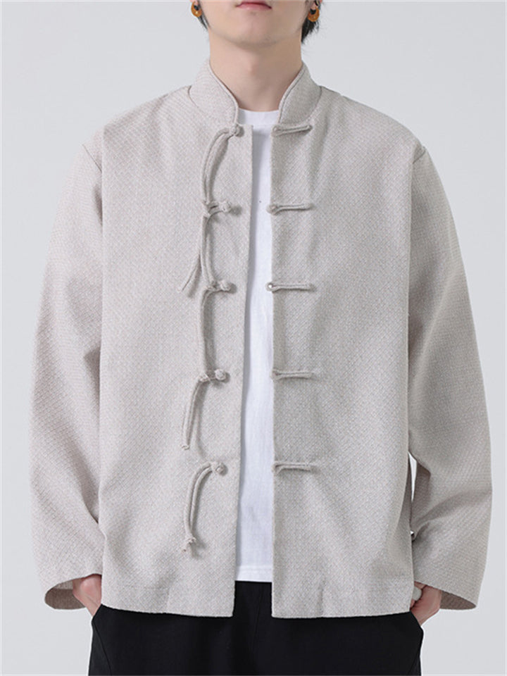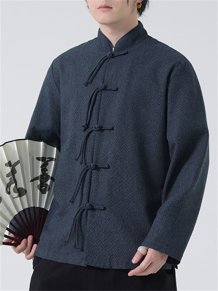Men's Chinese Style Solid Color Frog Button Stand Collar Shirts