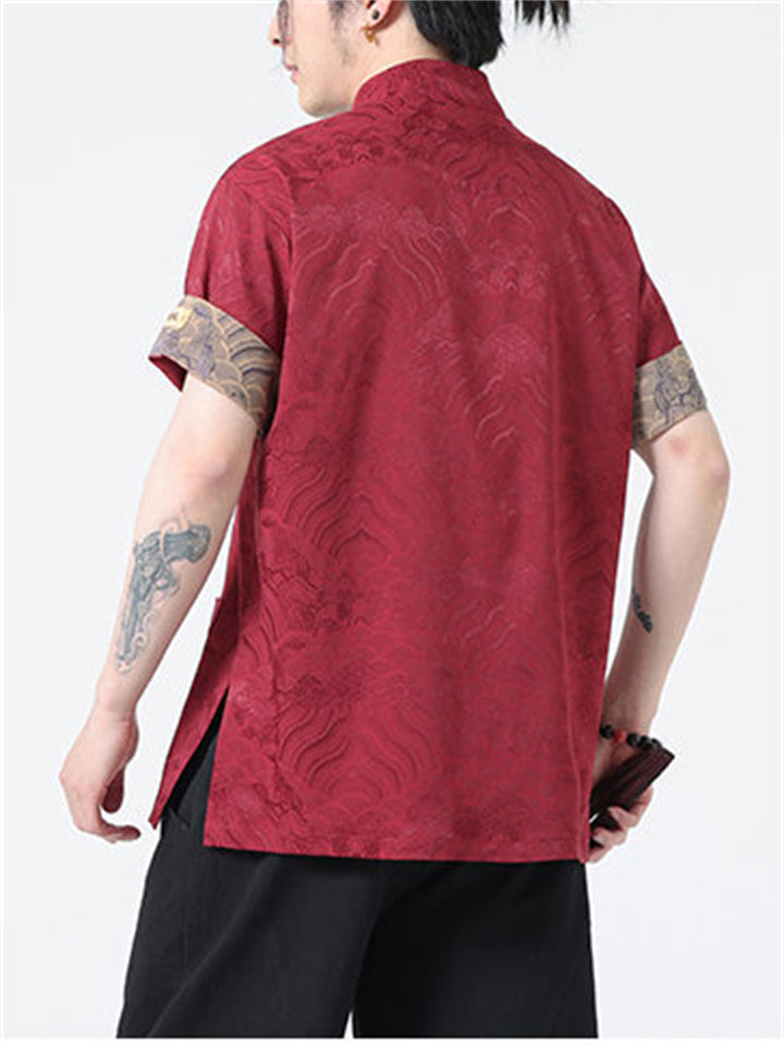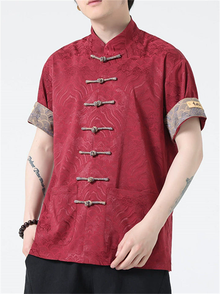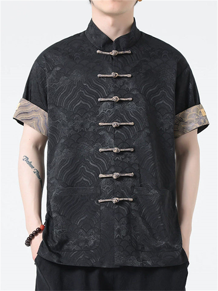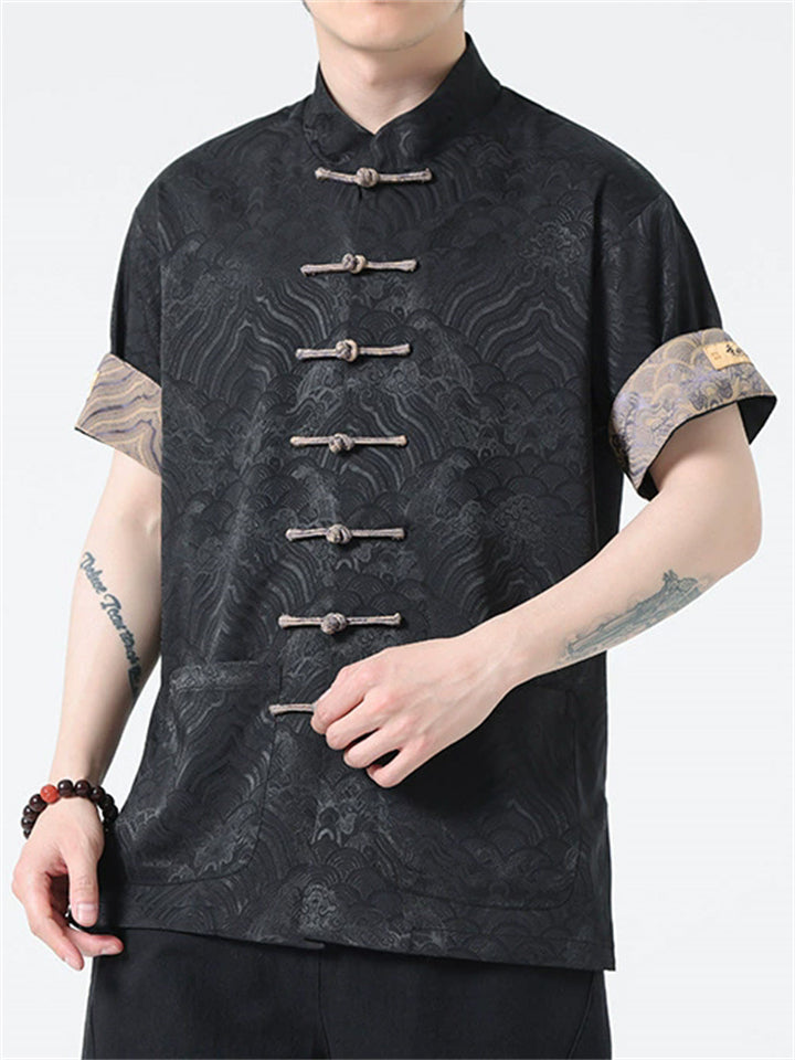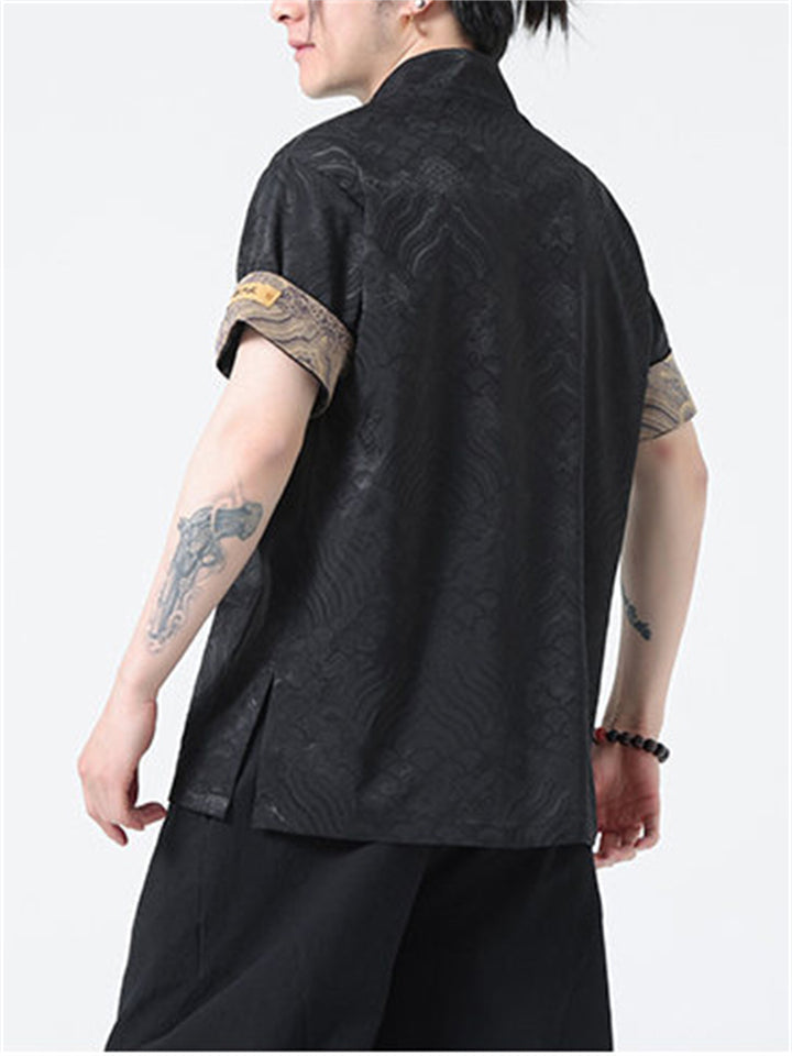 Men's Chinese-style Stand Collar Short Sleeve Jacquard Shirt