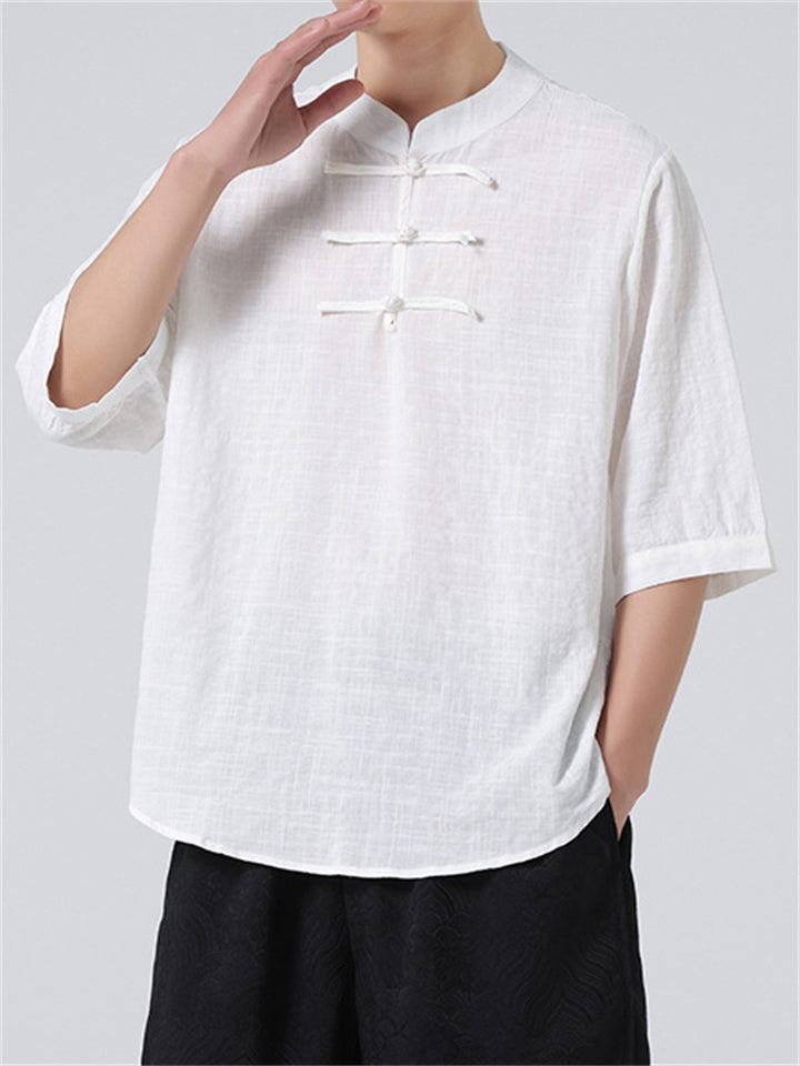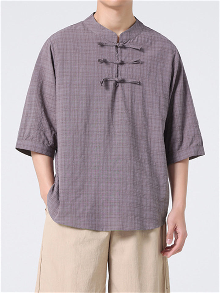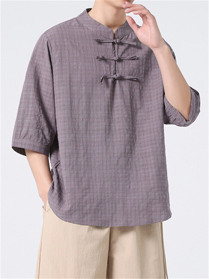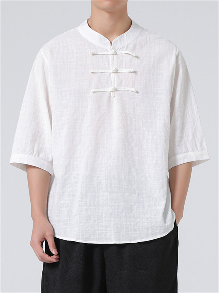 Men's Vintage Summer Solid Color 3/4 Sleeve Stand Collar Shirts