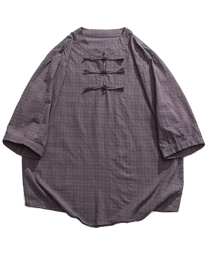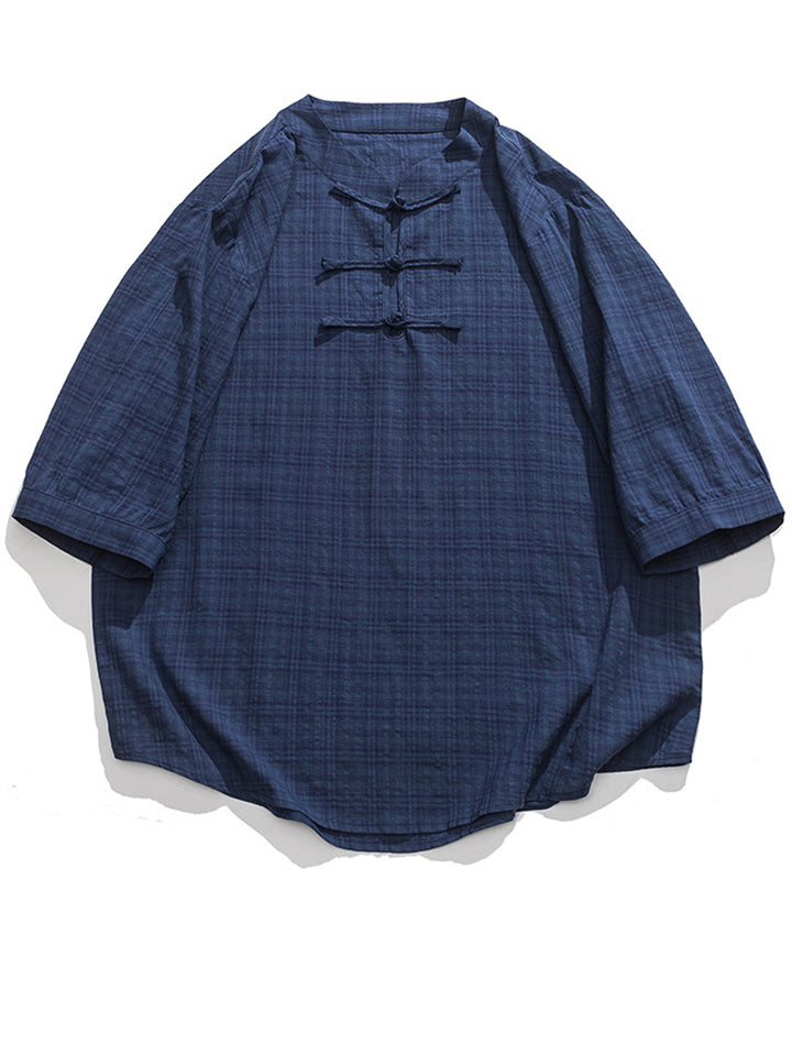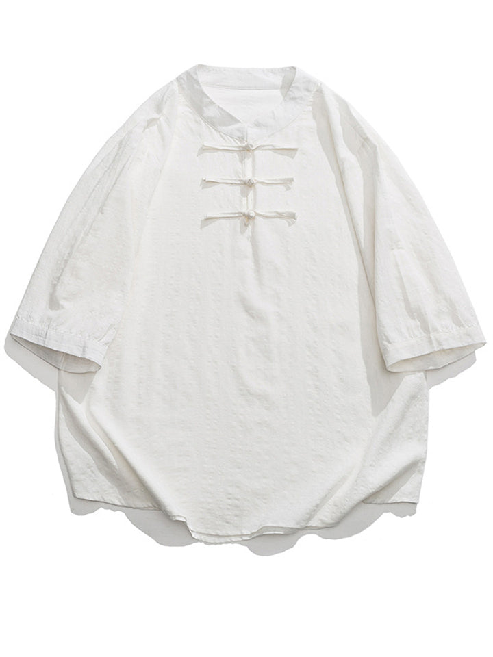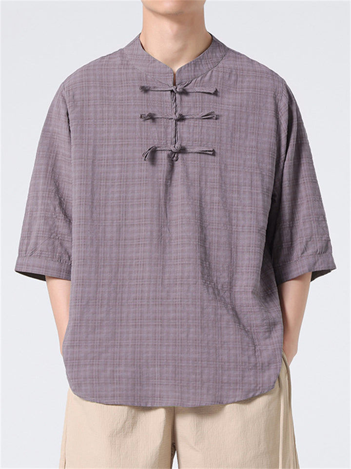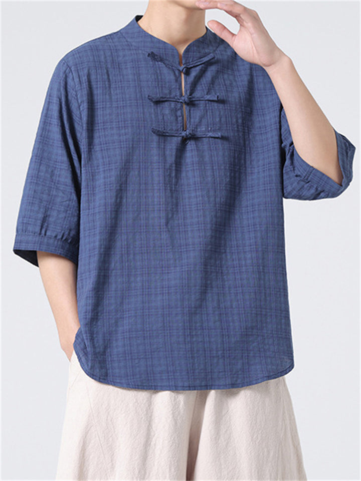 Men's Vintage Summer Solid Color 3/4 Sleeve Stand Collar Shirts