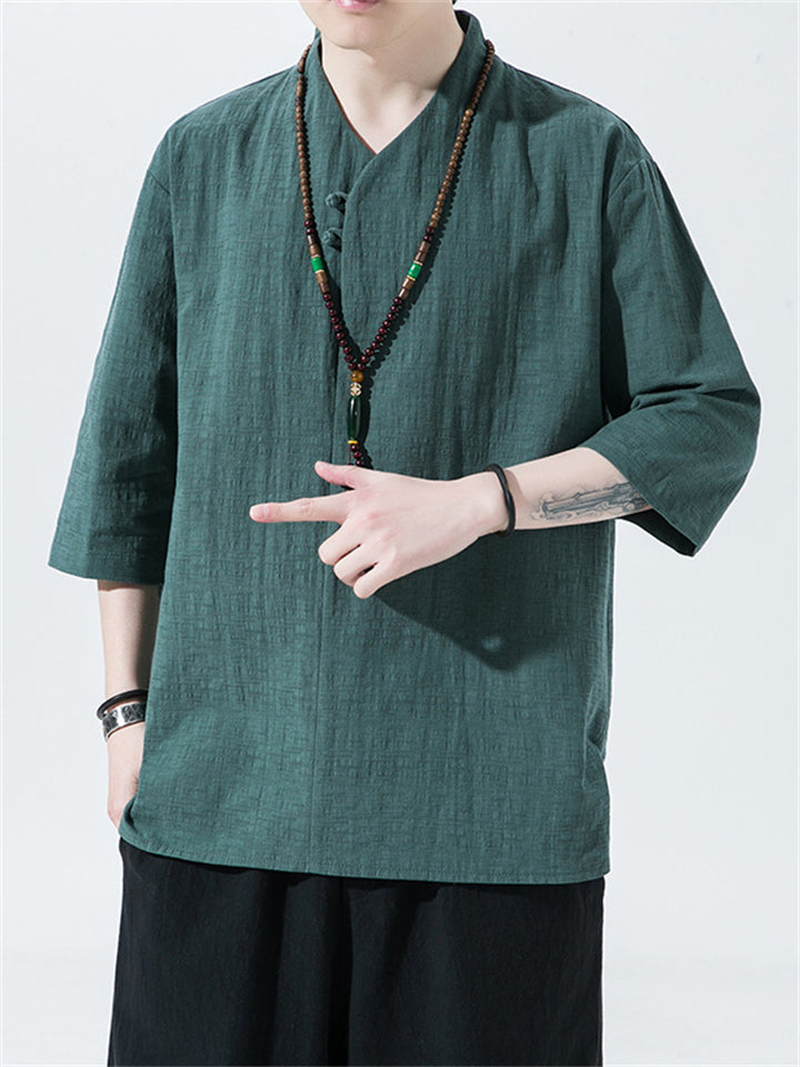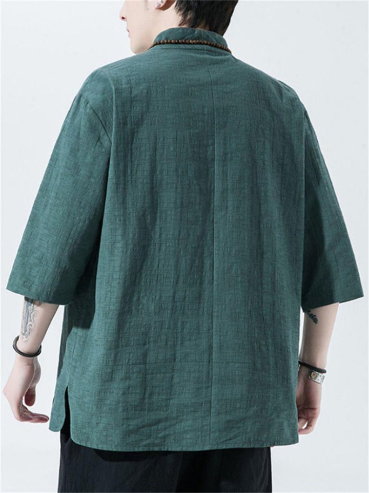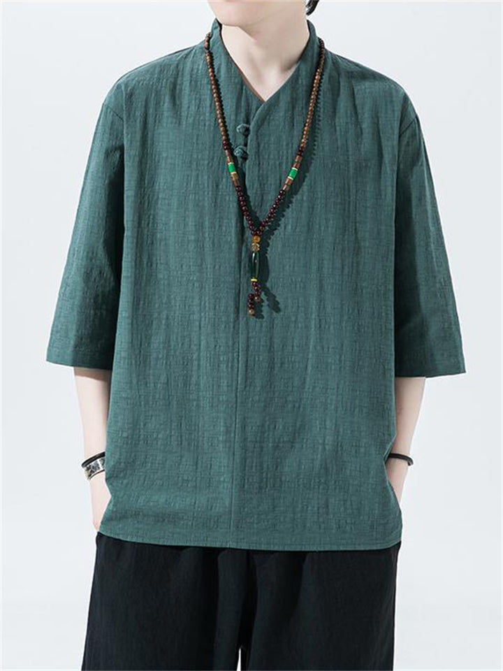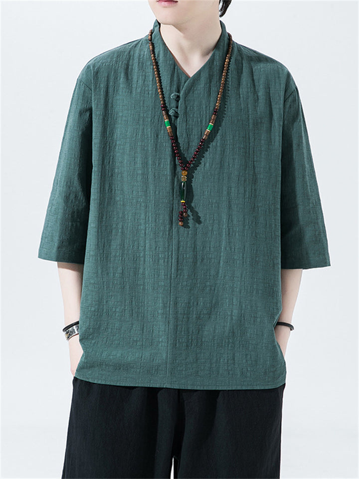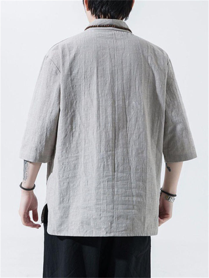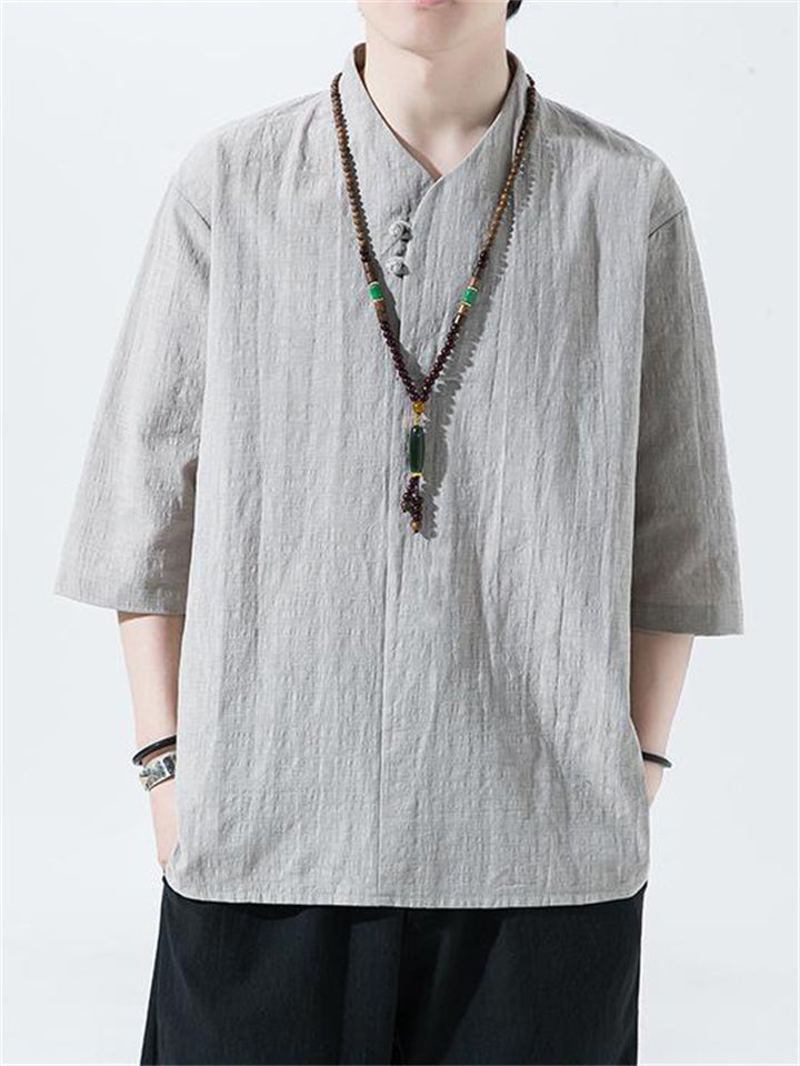 Men's Vintage Summer Solid Color 3/4 Sleeve Stand Collar Shirts