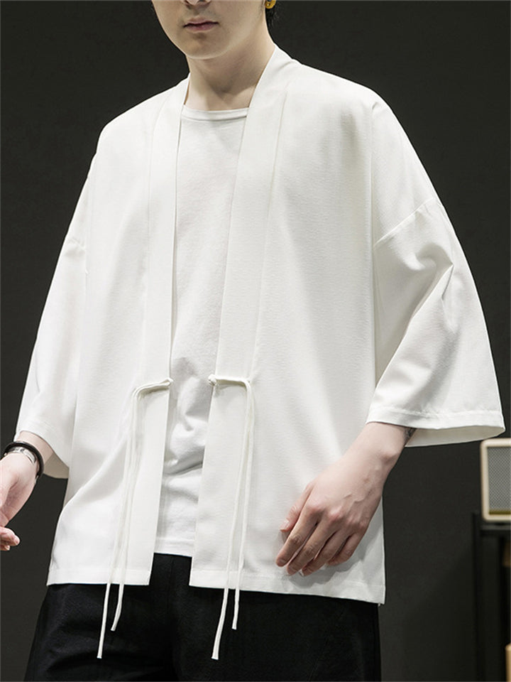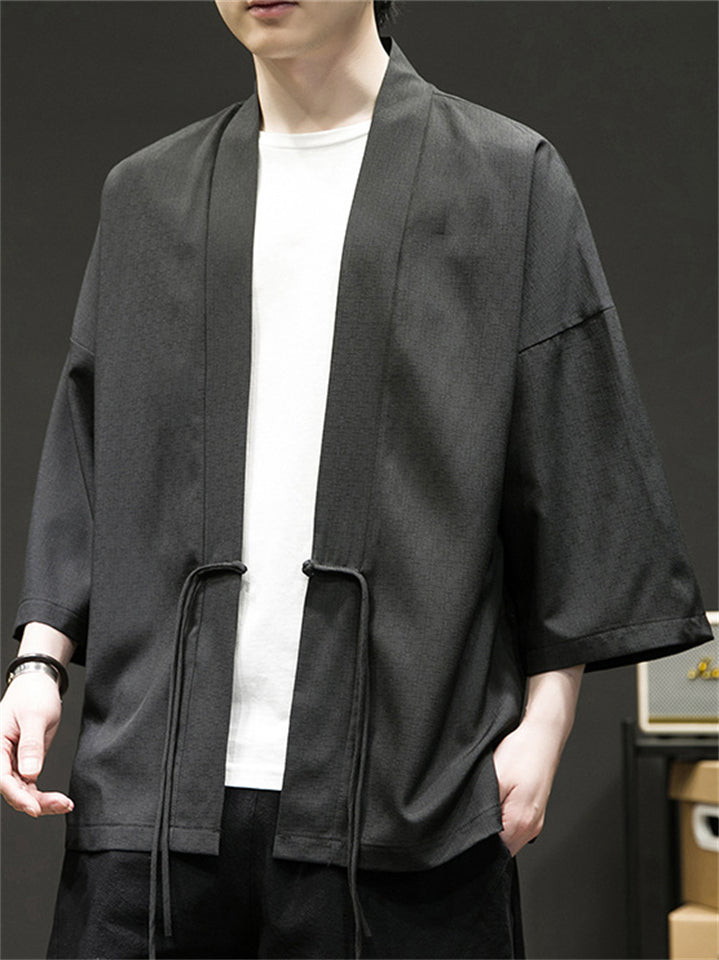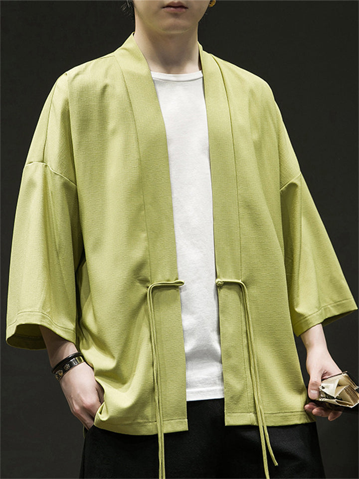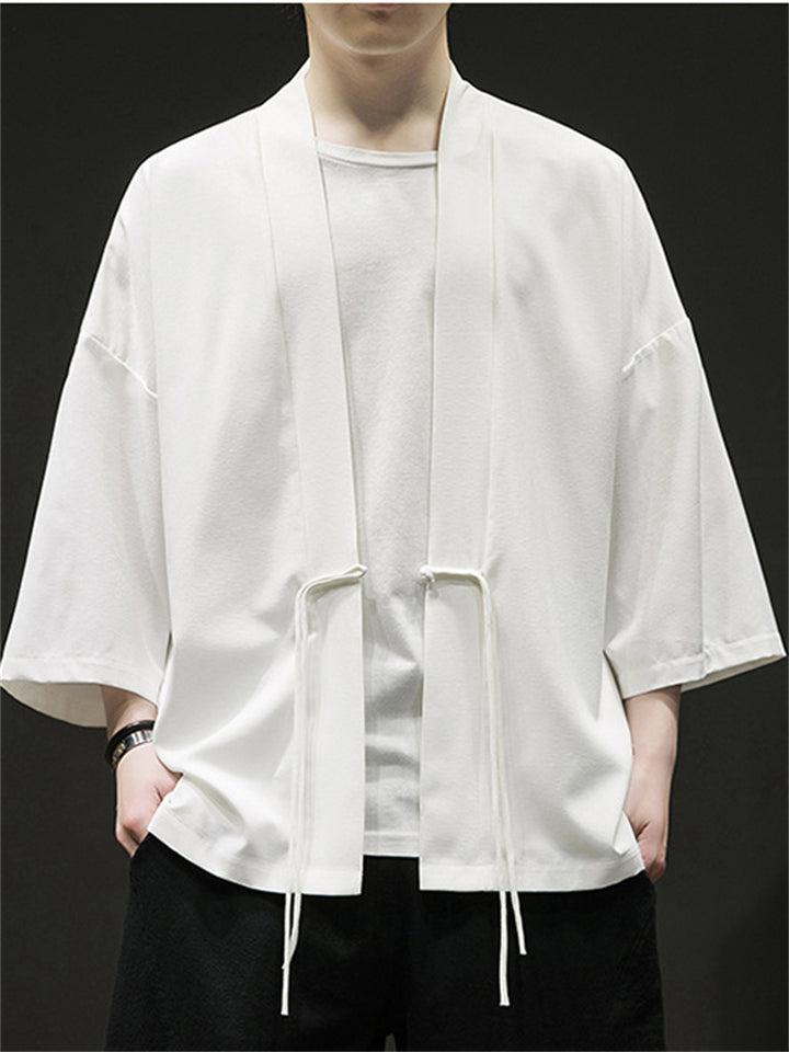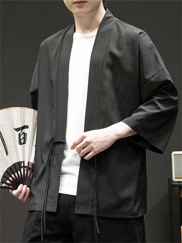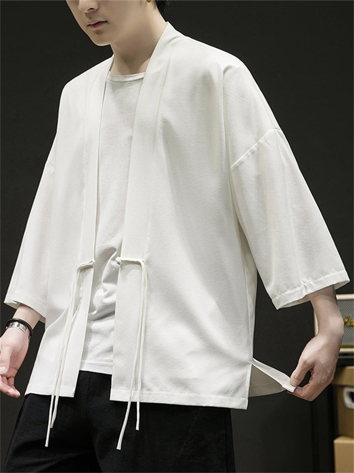 Men's Chinese Zen Style Solid Color Cardigan Shirt
