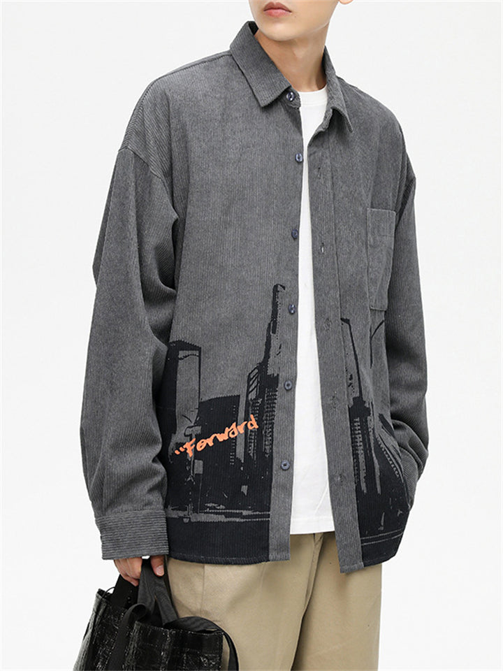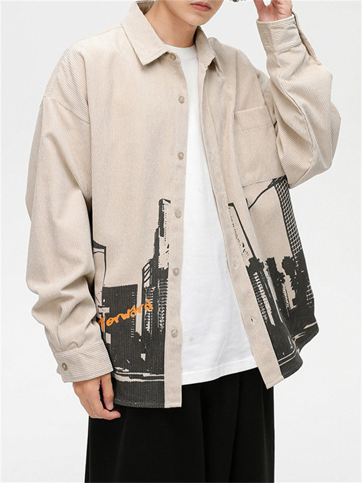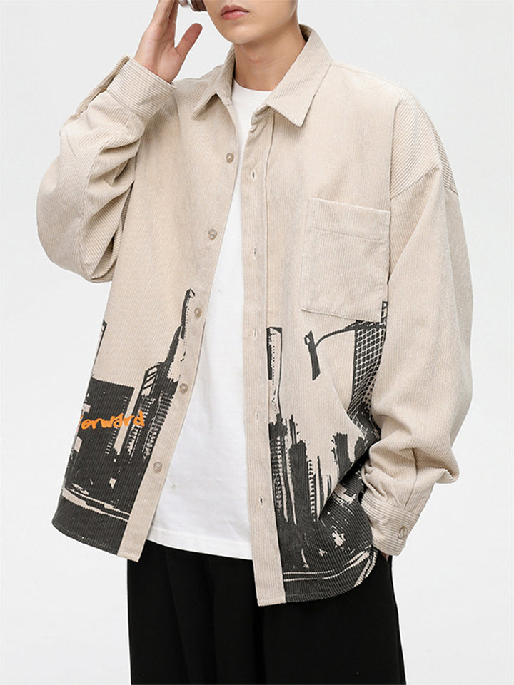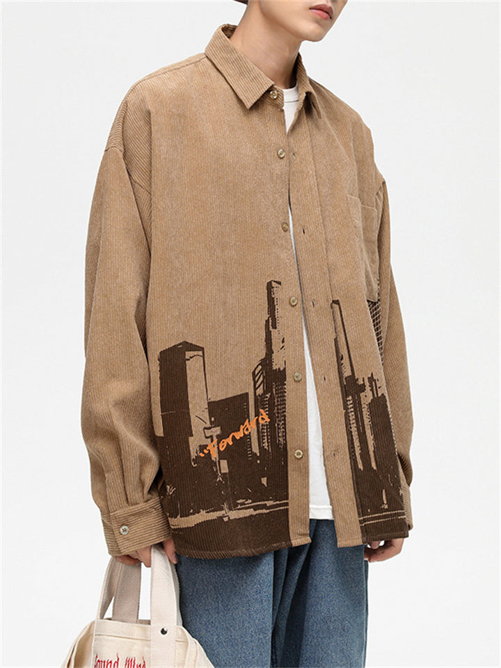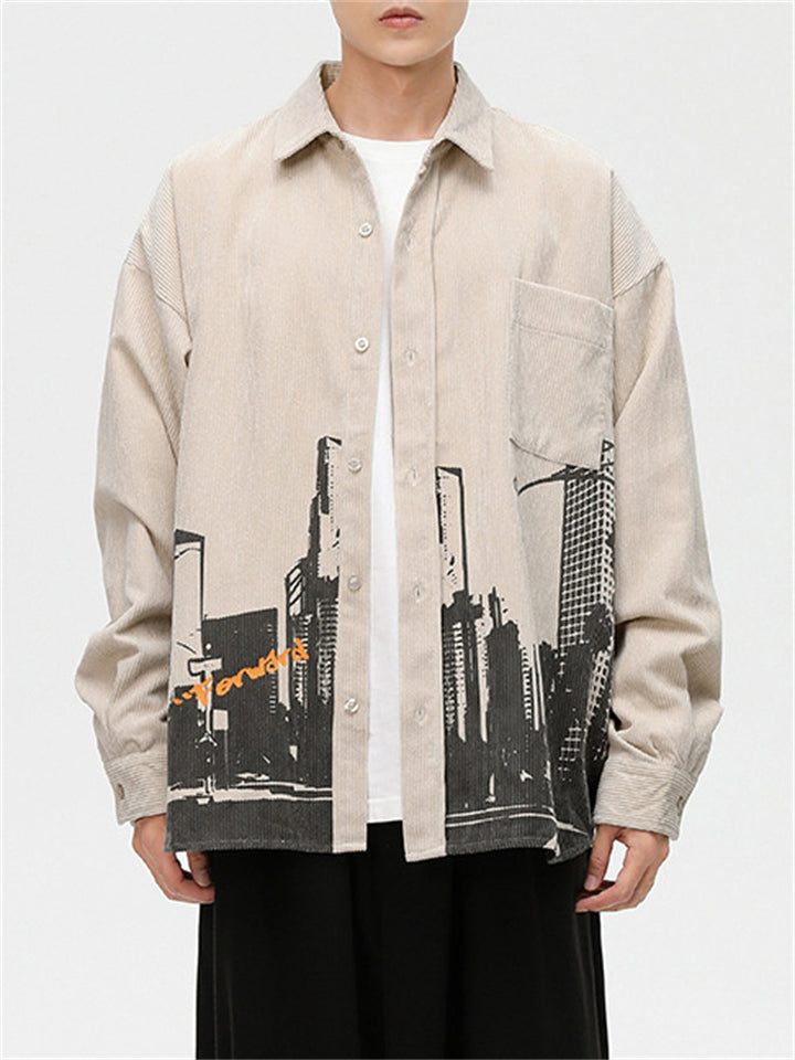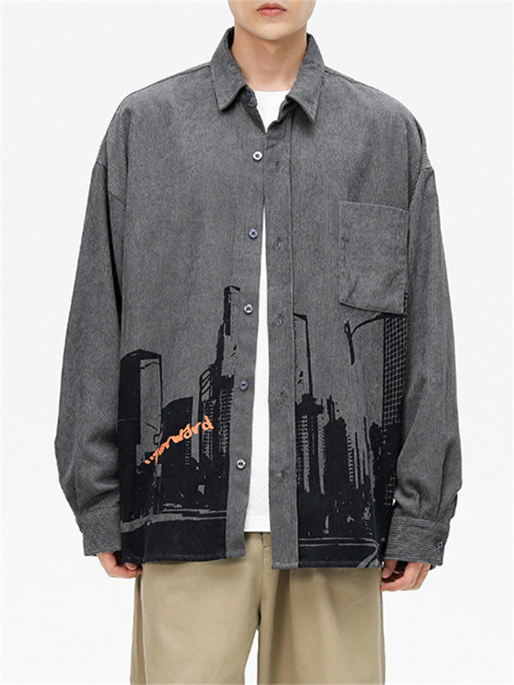 Men's Cityscape Pattern Print Comfortable Shirts