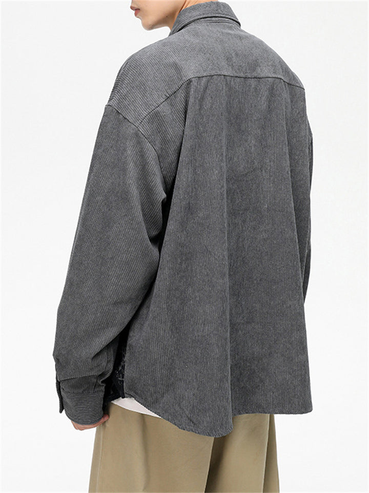 Vintage Long Sleeve Button Up Linen Shirt for Men