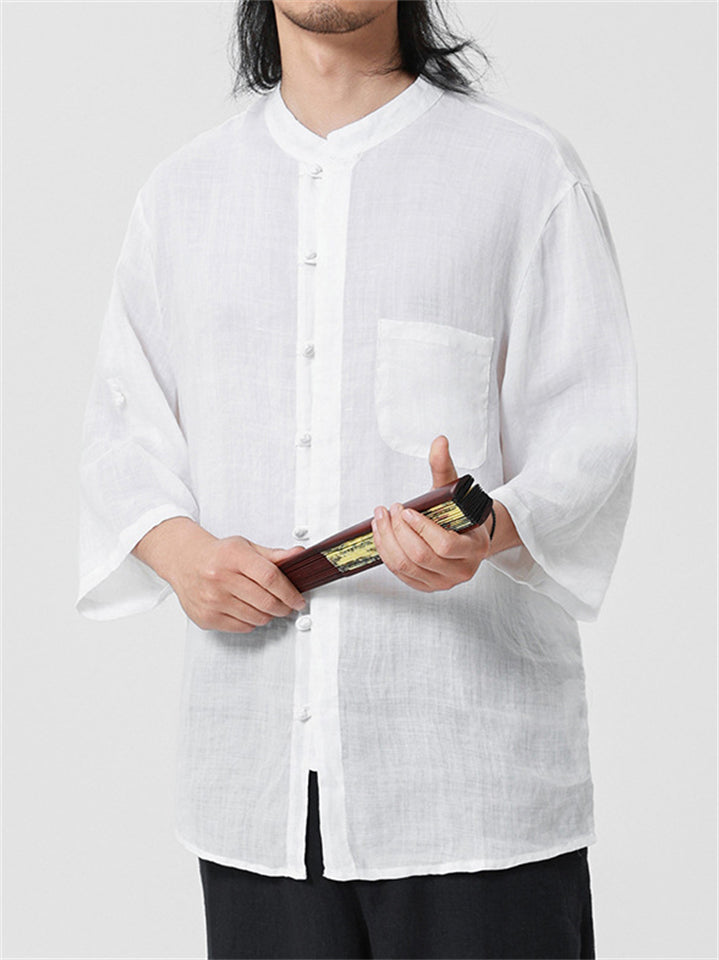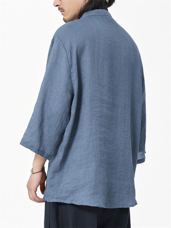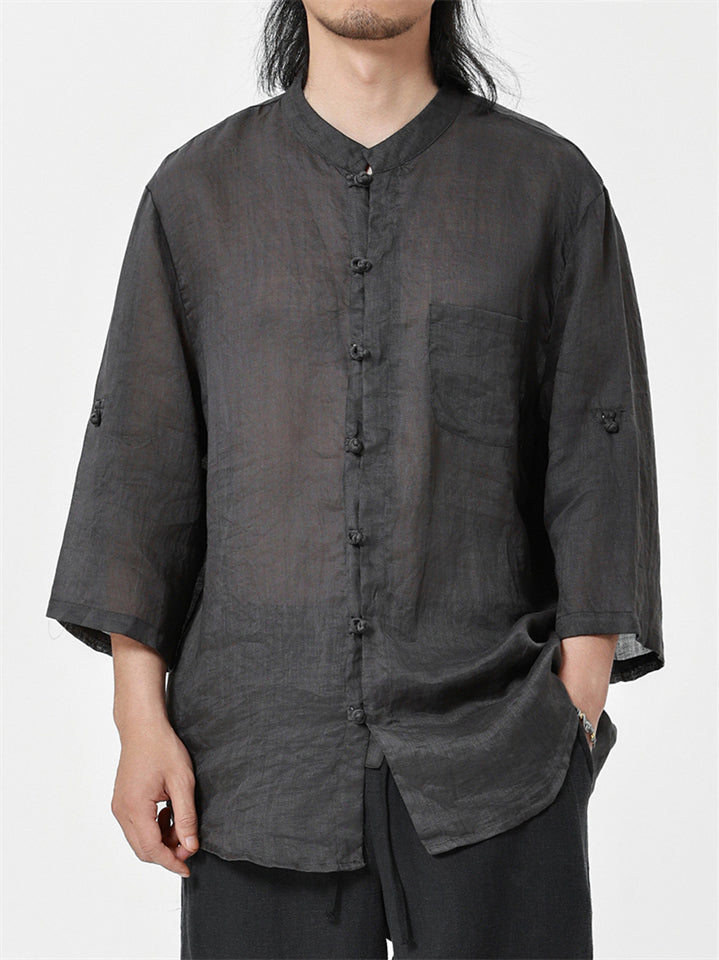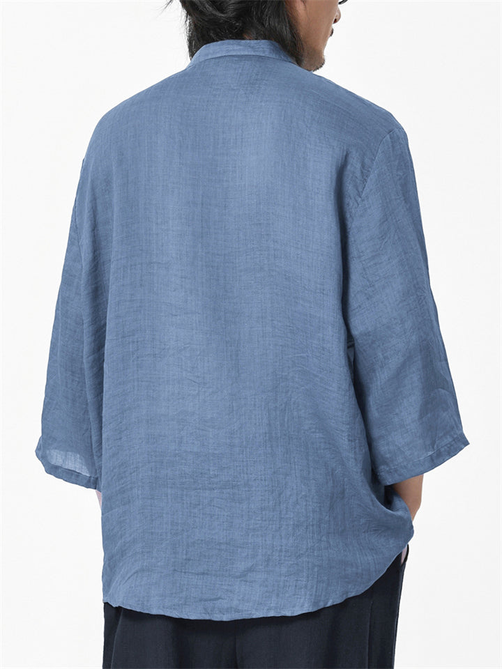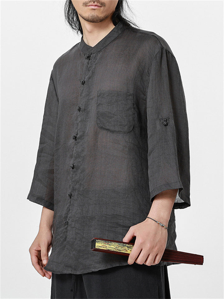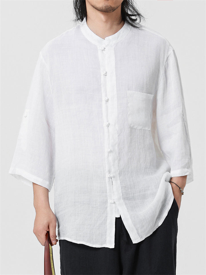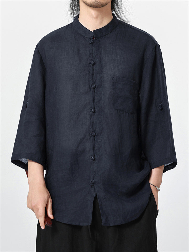 Men's Vintage Summer Solid Color 3/4 Sleeve Stand Collar Shirts
