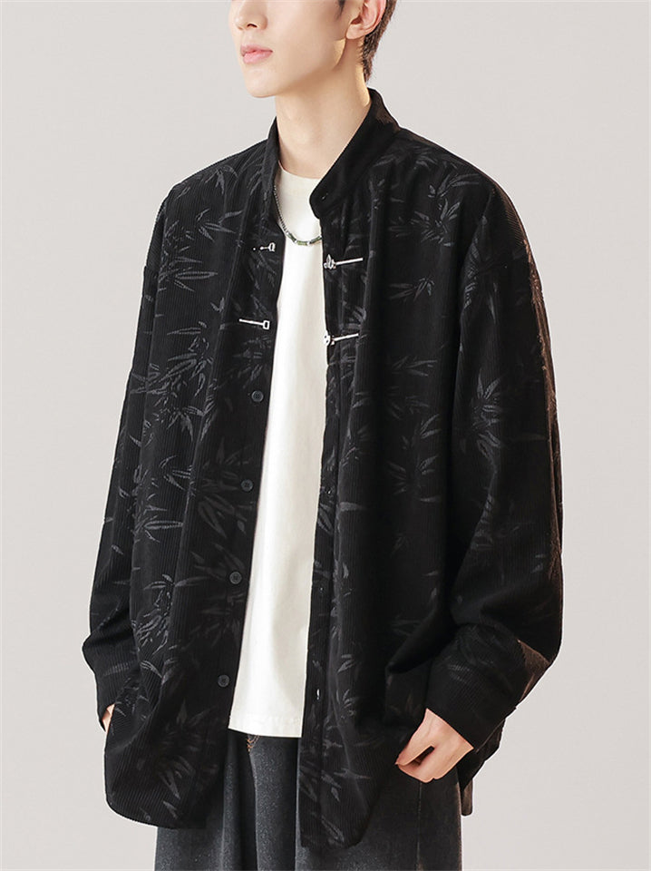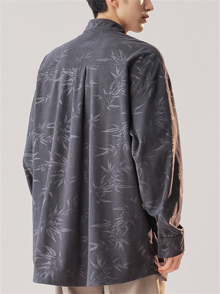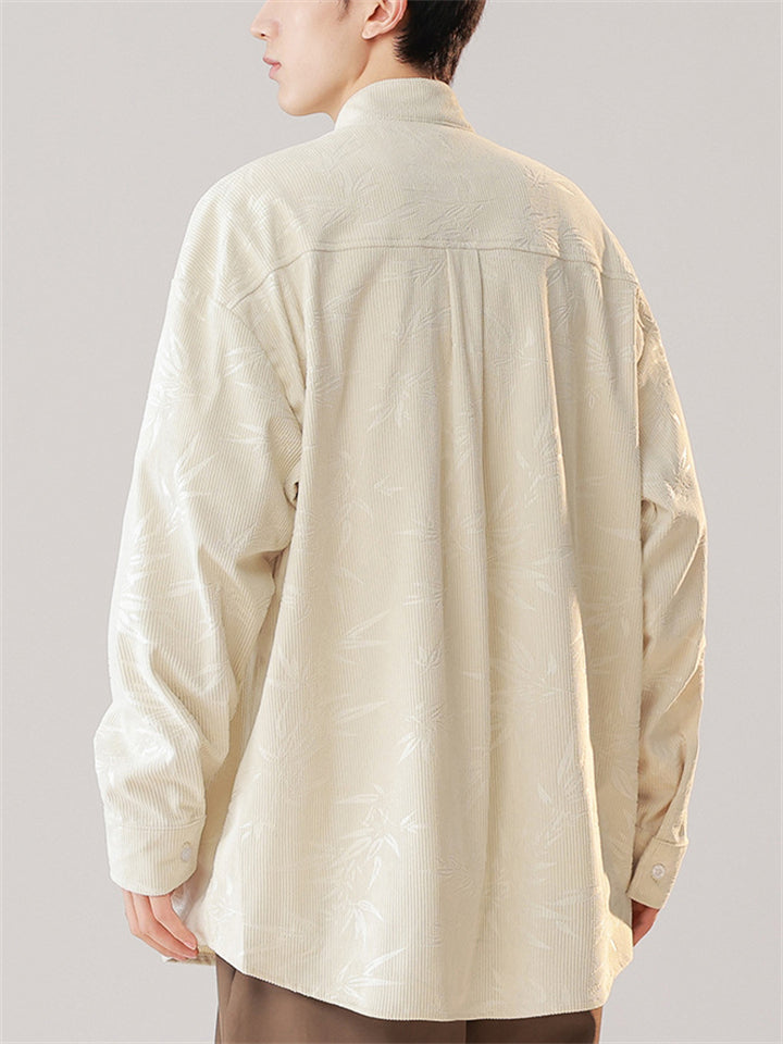 Men's Autumn Vintage Jacquard Stand Collar Long Sleeve Shirts