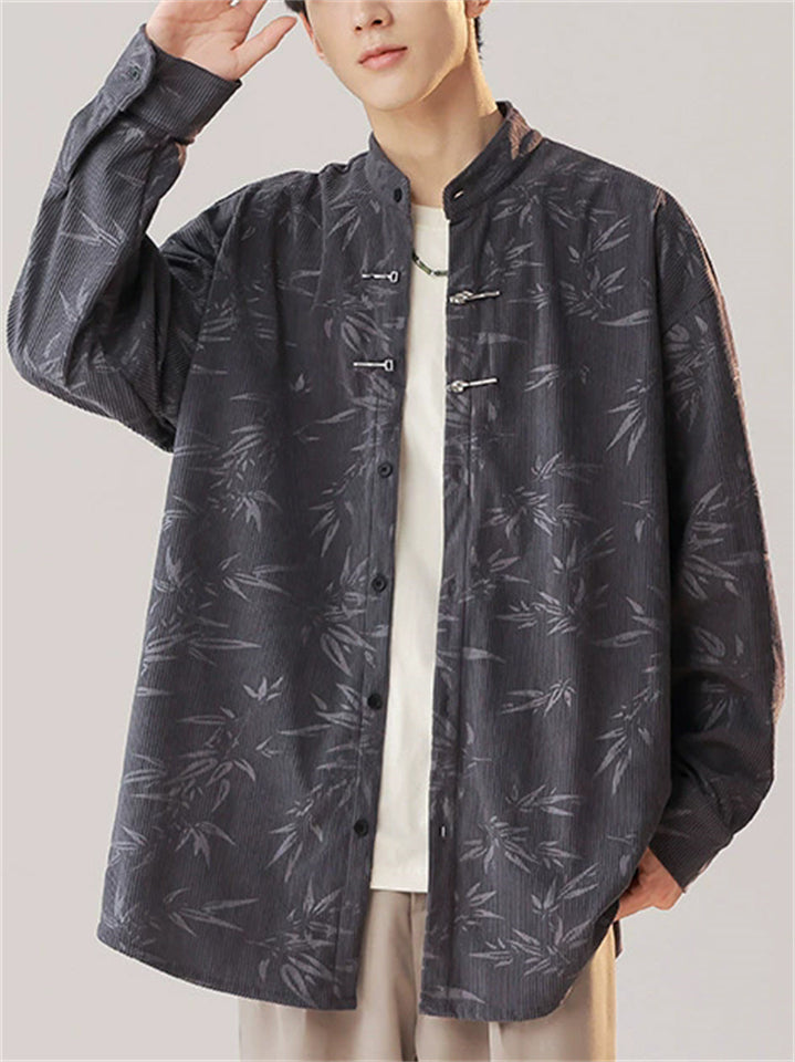 Men's Autumn Vintage Chinese Style Printed Frog Button Tangsuit Shirts