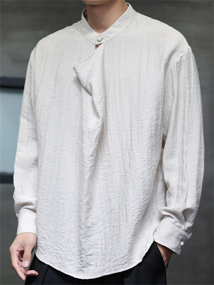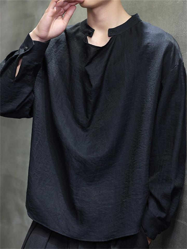 Men's Autumn Solid Color Zen Style Pullover Long Sleeve Shirts