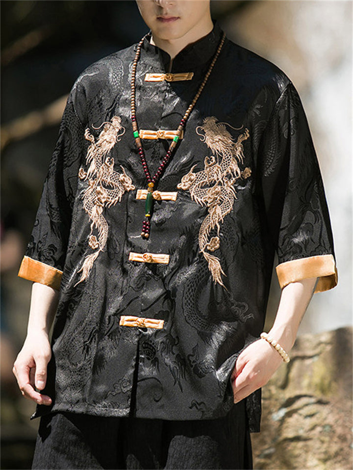 Men's Summer Chinese Style Loose Fit Dragon Embroidered Shirts