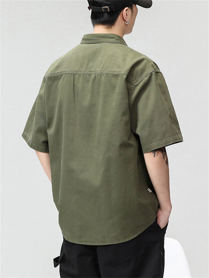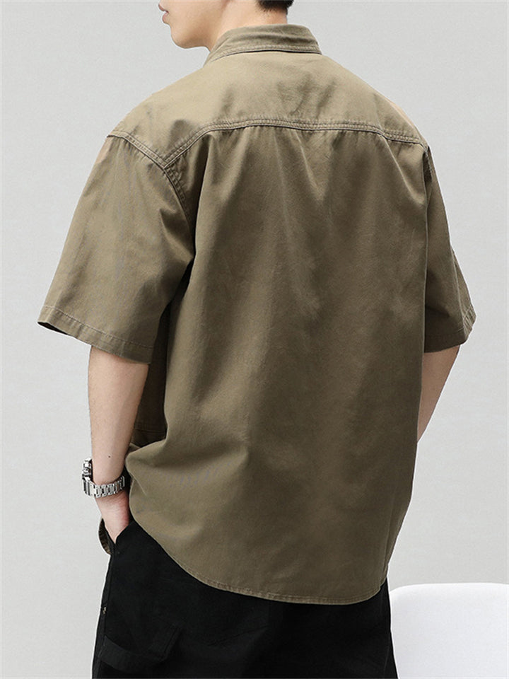 Men's Simple Solid Color Stand Collar Pullover Short Sleeve Shirts