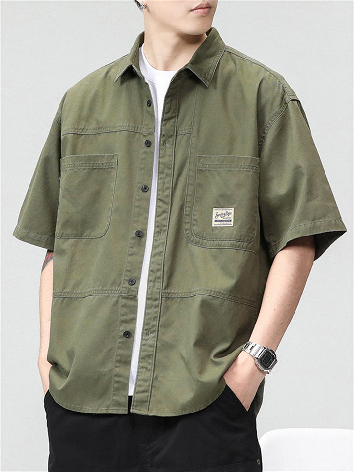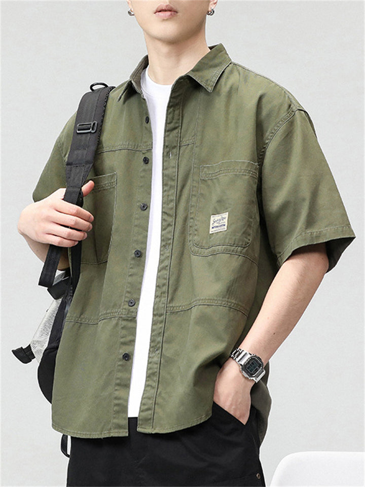 Men's Cool Lapel Chest Pocket Button Up Shirt