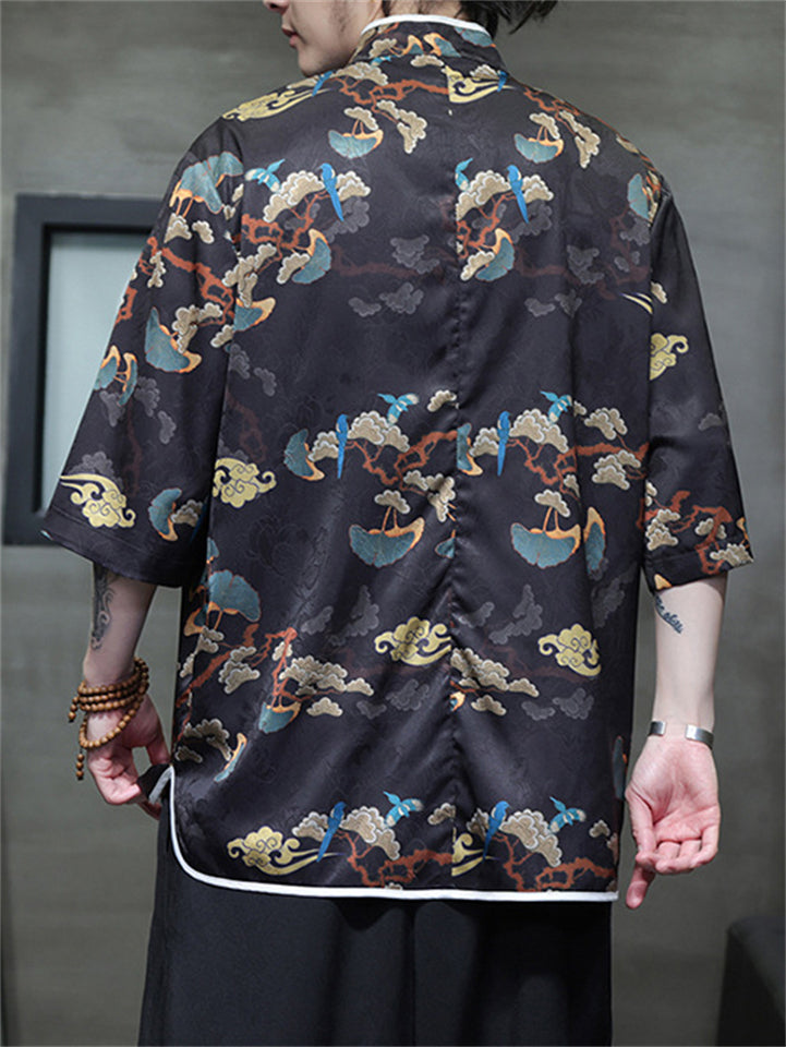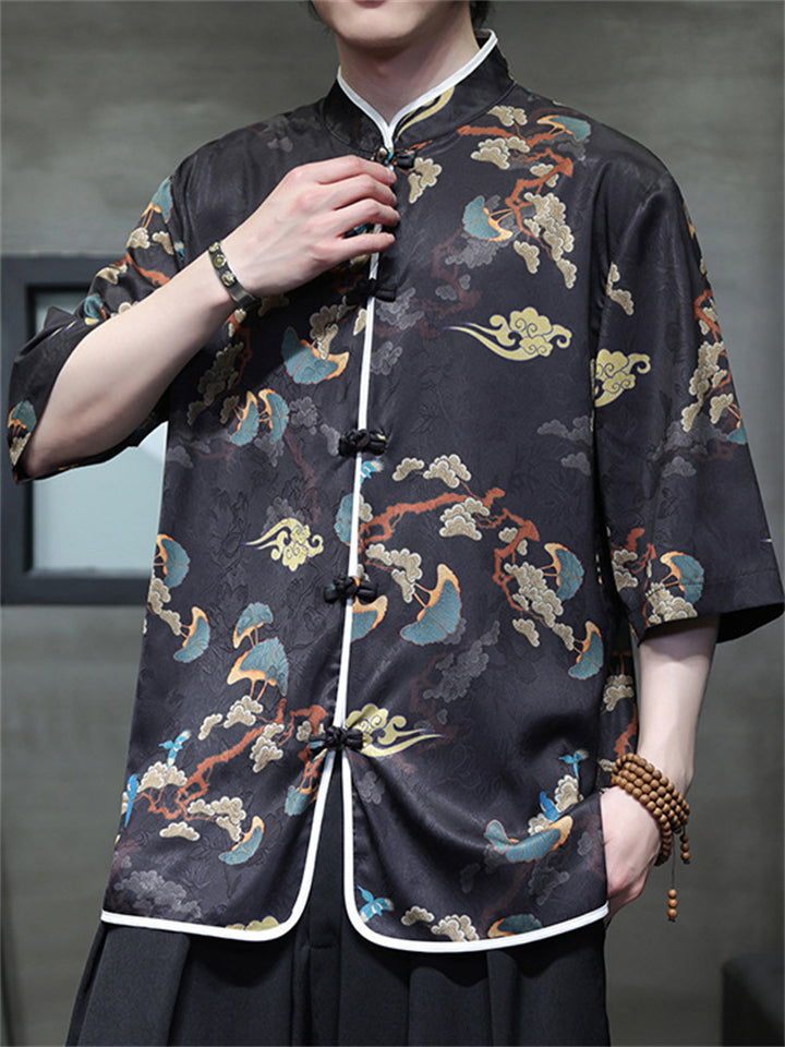 Men's Autumn Vintage Chinese Style Printed Frog Button Tangsuit Shirts