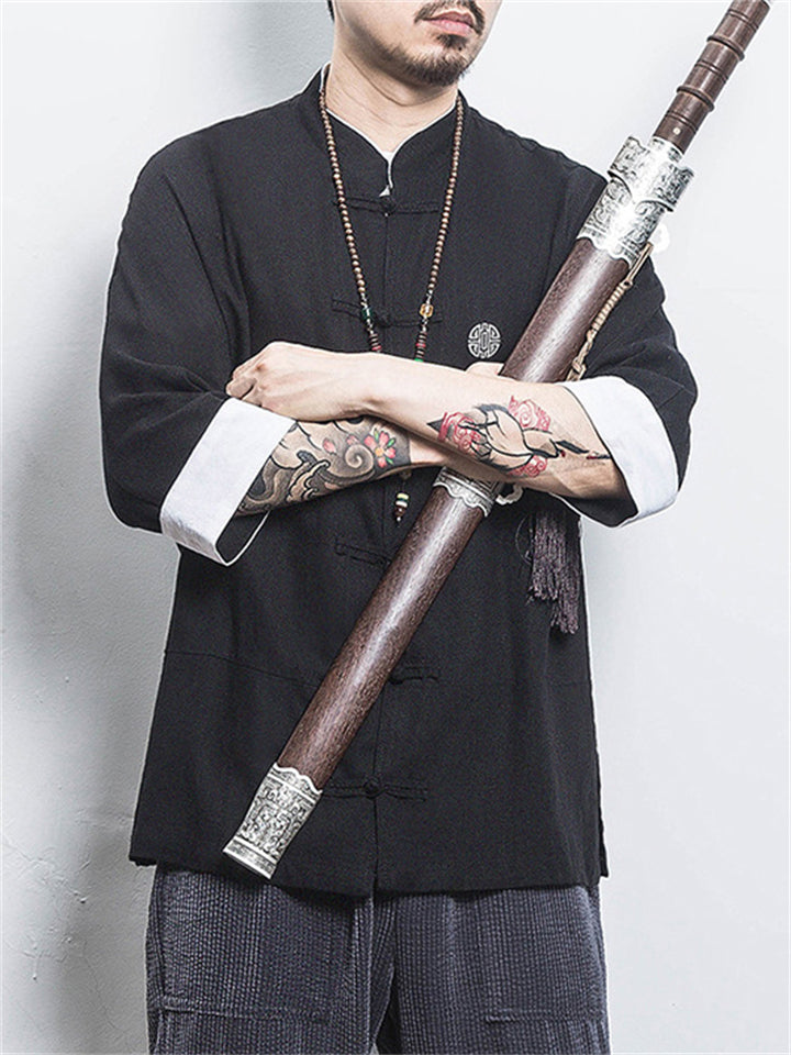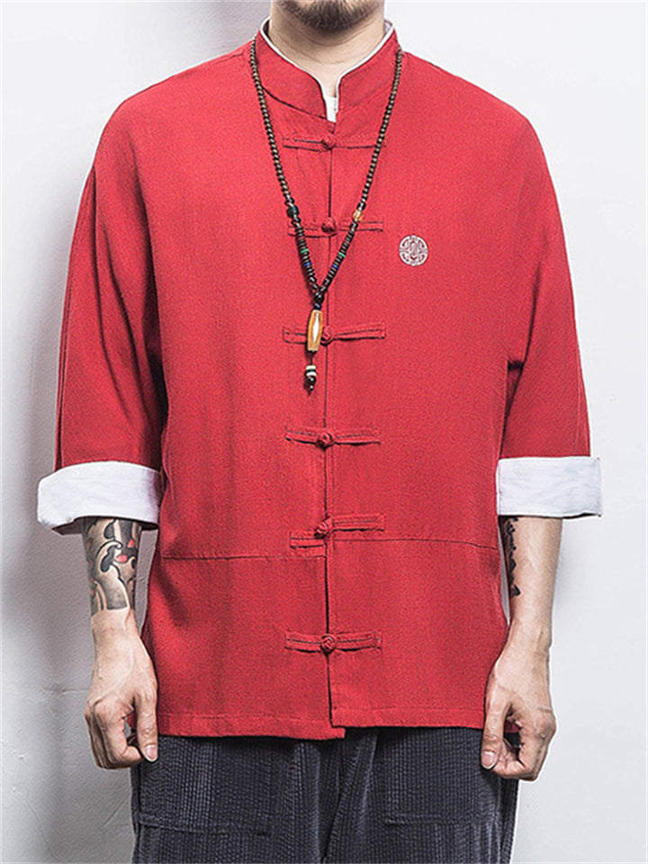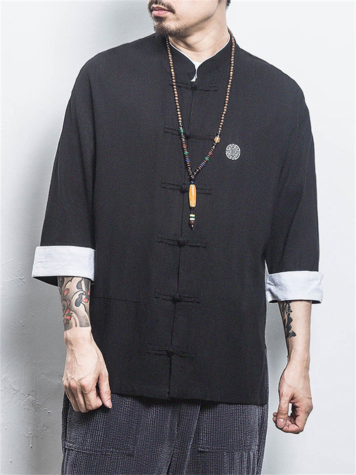 Men's Cotton Linen Cozy 3/4 Sleeve Kungfu Training Shirt