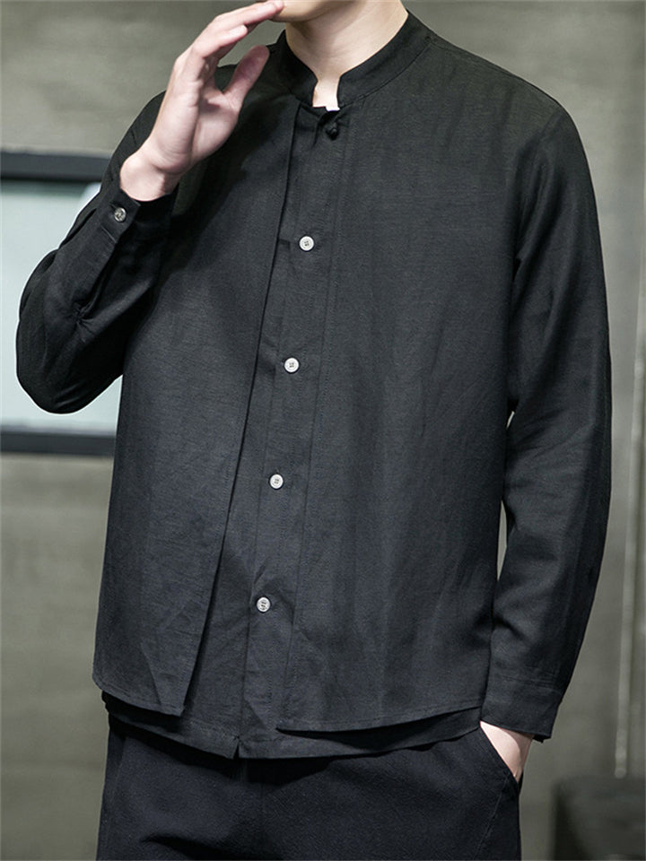 Men's Simple Chinese Style Ramine Stand Collar Tangsuit Shirts