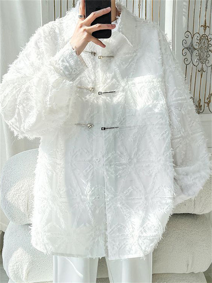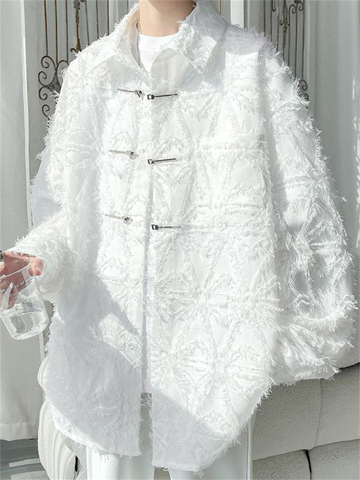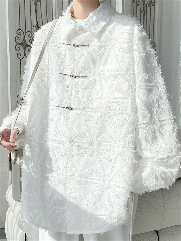 Mens Fashion Chinese Style Long Sleeve Fringe Shirt