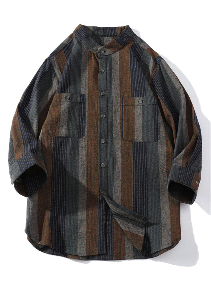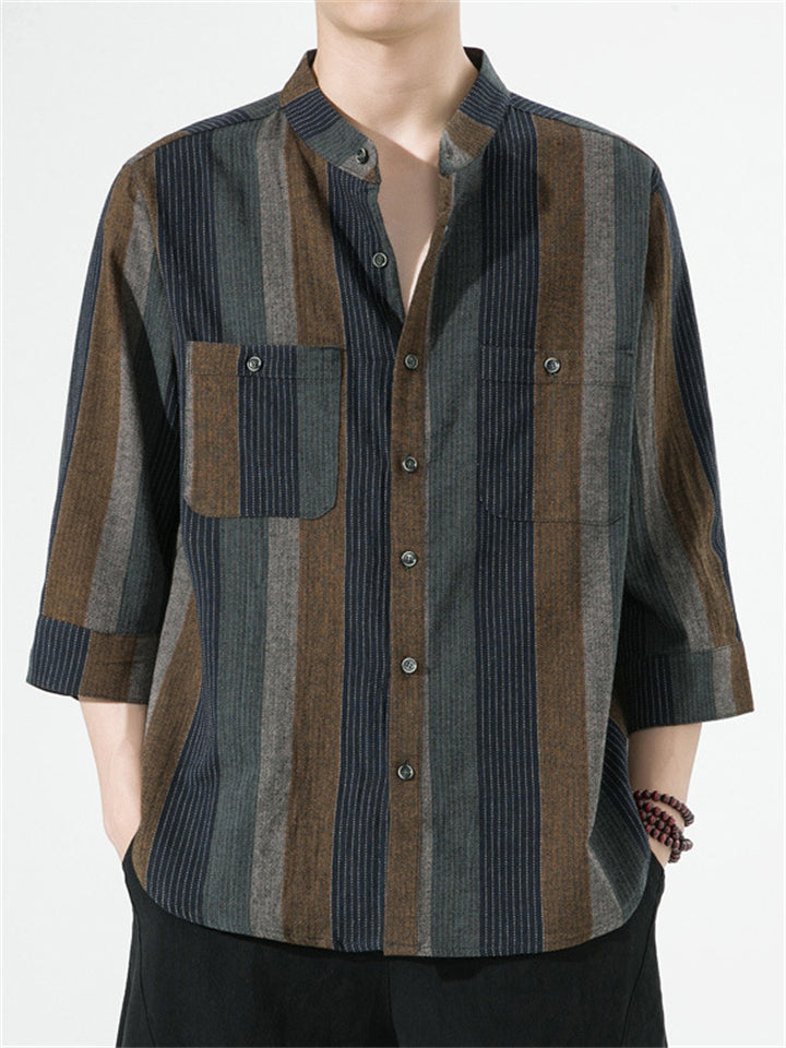 Men's Vintage Summer Solid Color 3/4 Sleeve Stand Collar Shirts