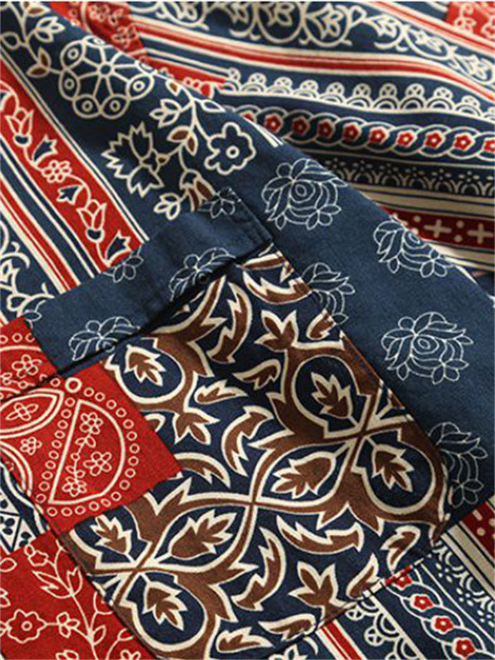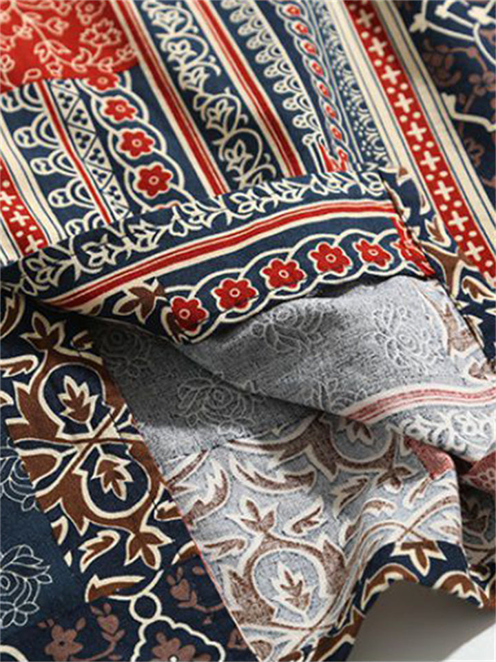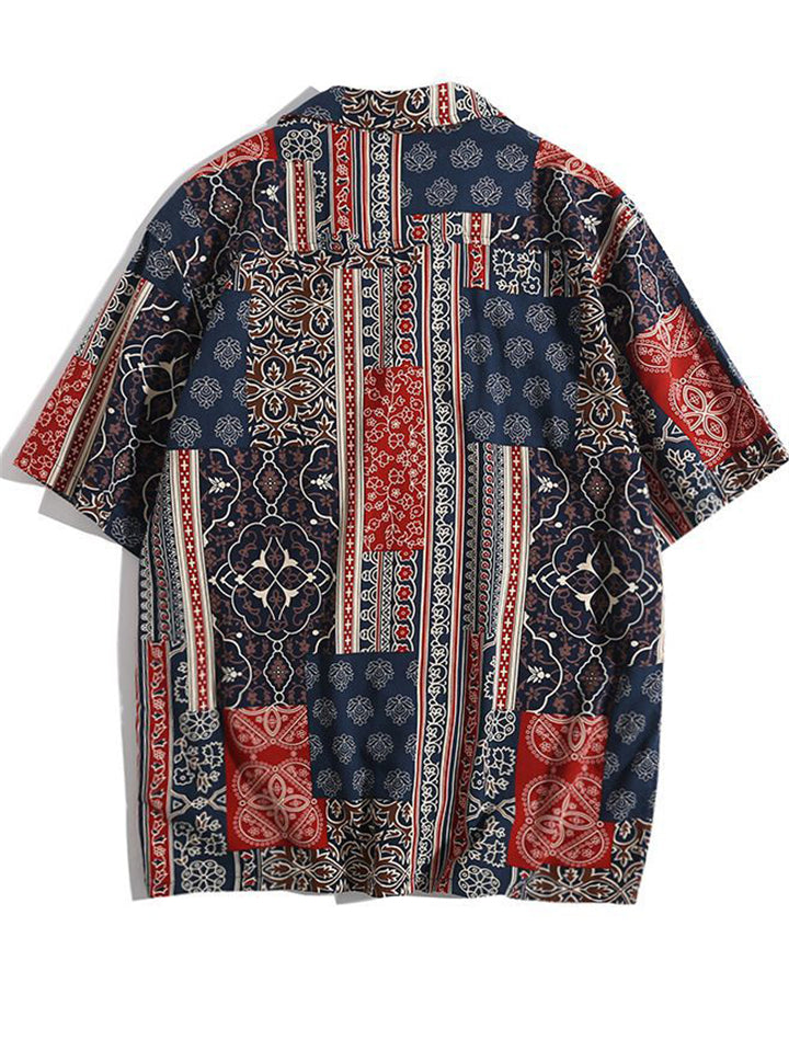 Men's Vintage Patchwork Ethnic Style Printed Half Sleeve Shirts