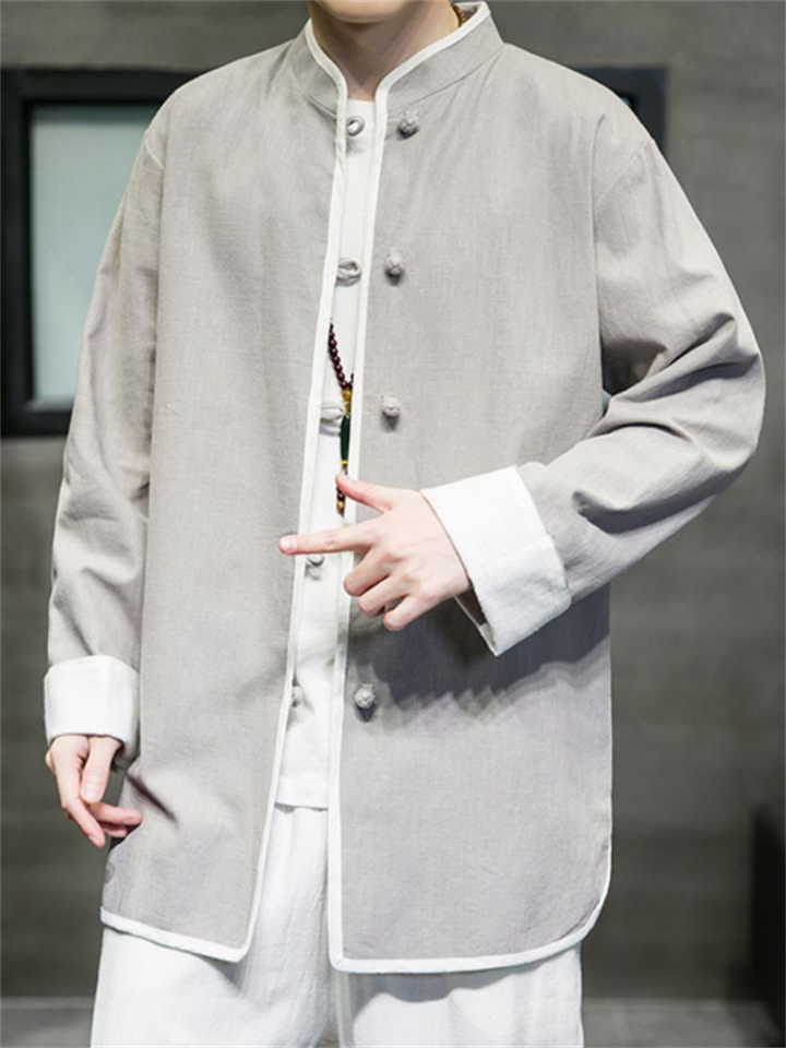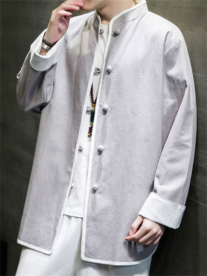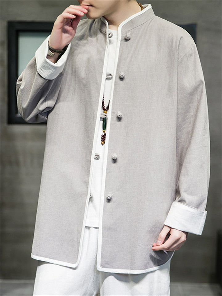 Men's Autumn Zen Style Solid Color Long Sleeve Shirts