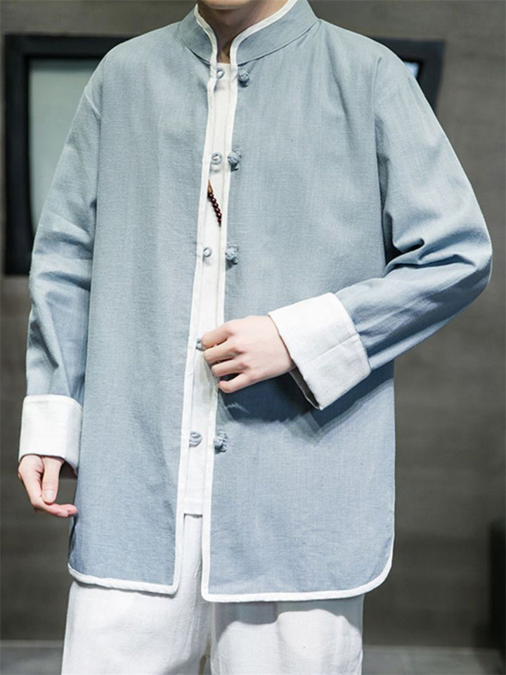 Men's Simple Chinese Style Ramine Stand Collar Tangsuit Shirts
