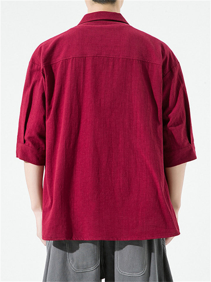 Men's Vintage Summer Solid Color 3/4 Sleeve Stand Collar Shirts