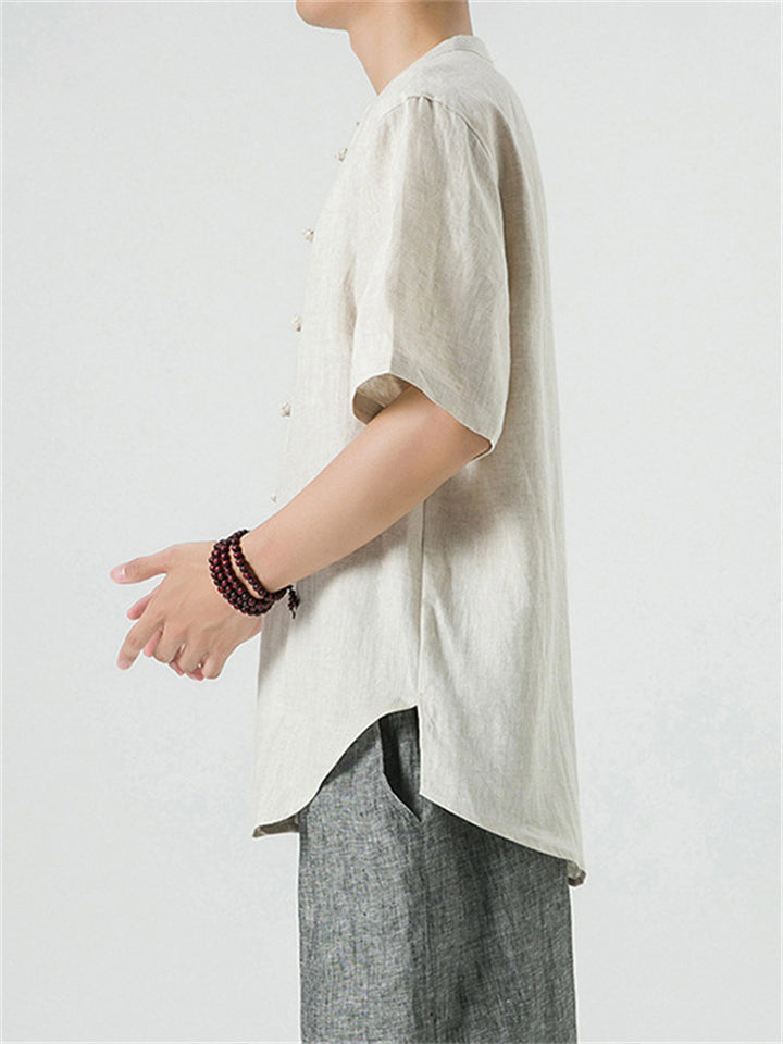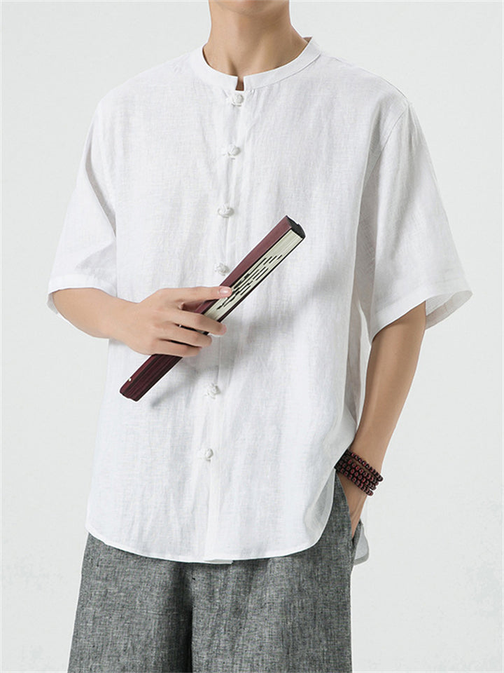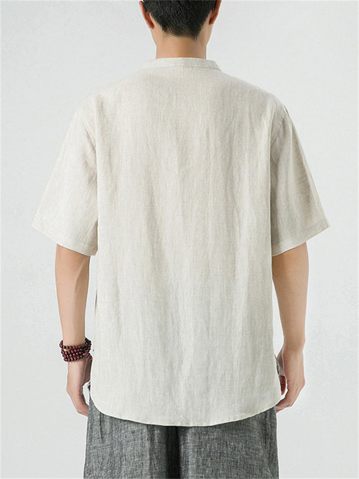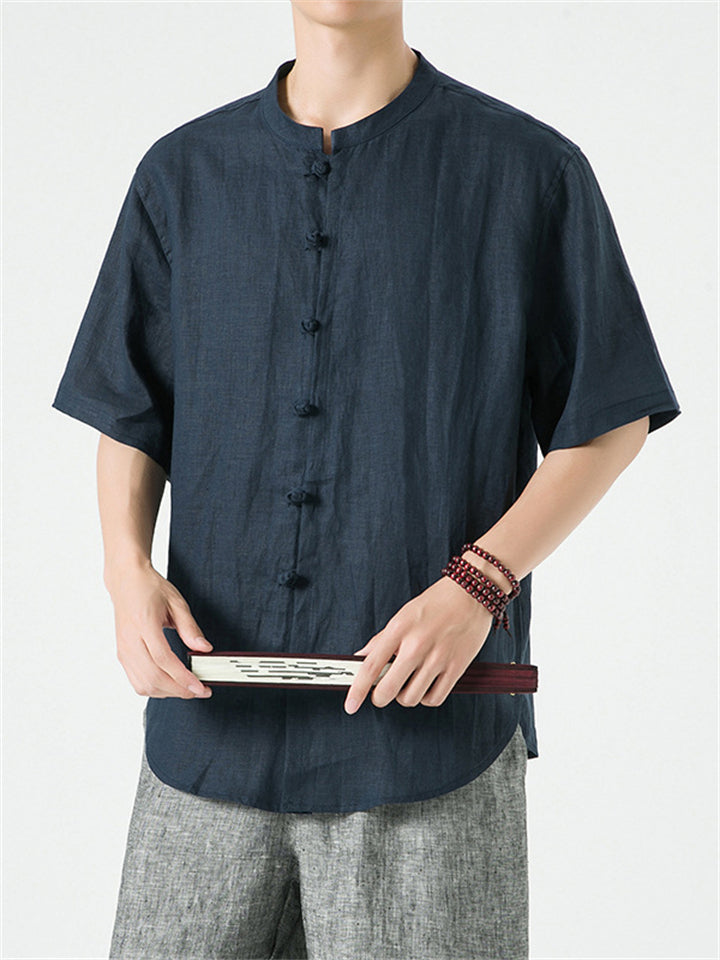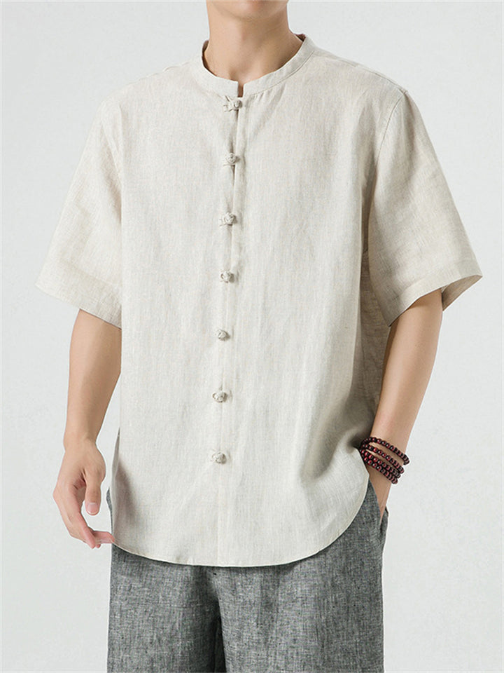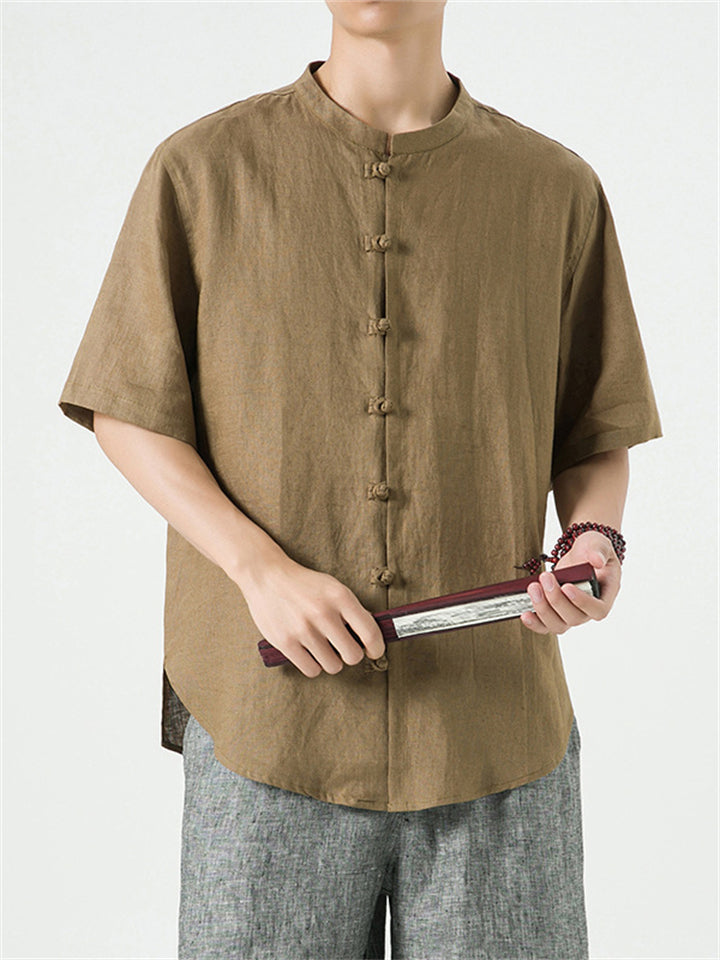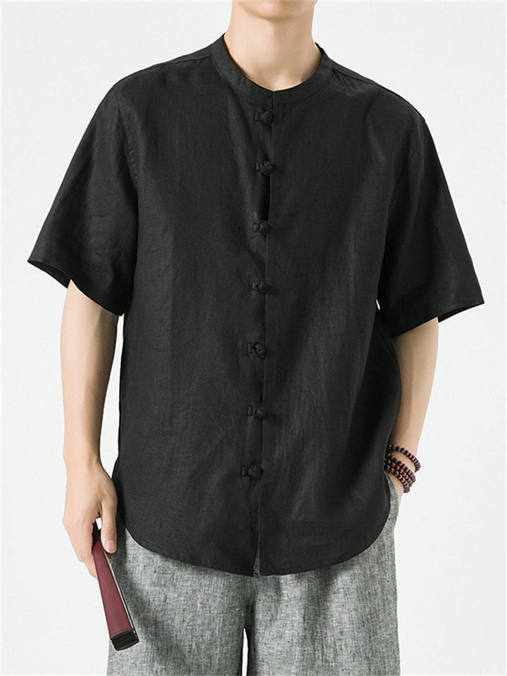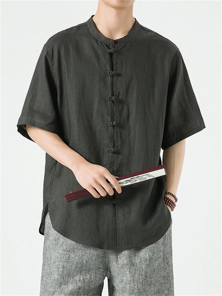 Men's Simple Chinese Style Ramine Stand Collar Tangsuit Shirts