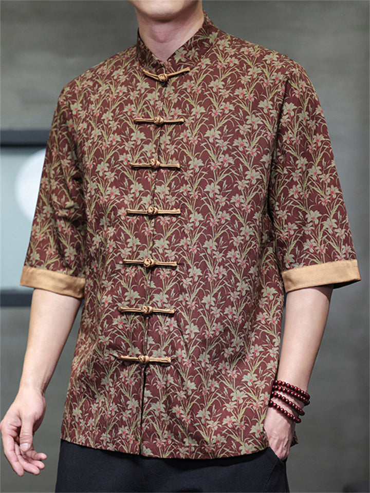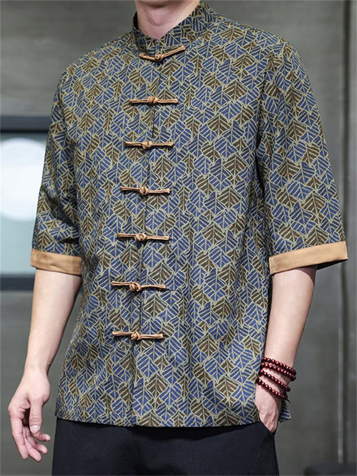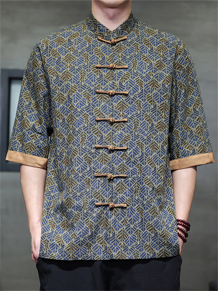 Men's Autumn Vintage Chinese Style Printed Frog Button Tangsuit Shirts