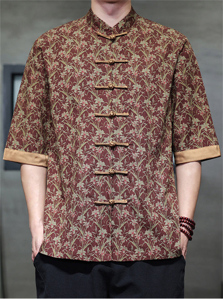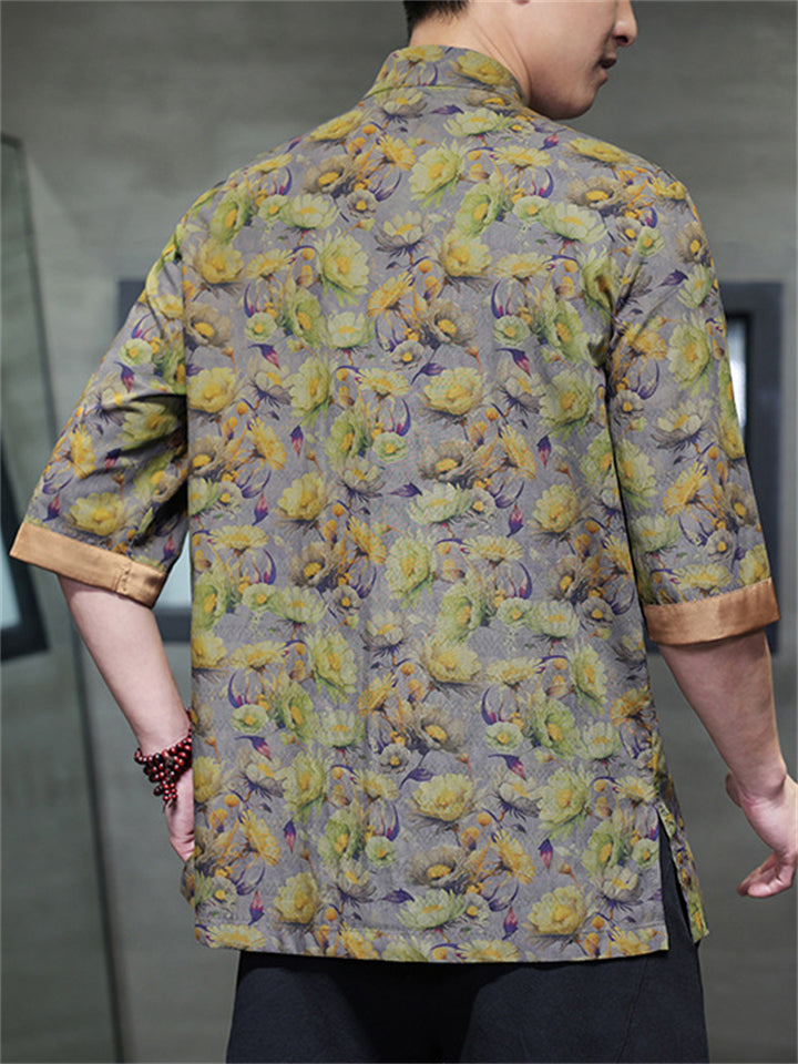 Men's Retro Chinese Style Print Tang Suit Half Sleeve Shirts