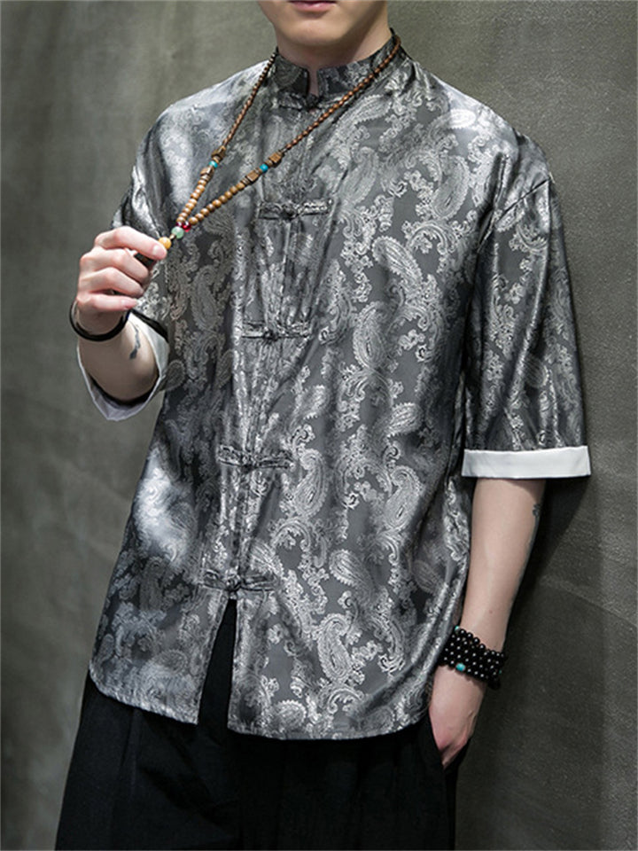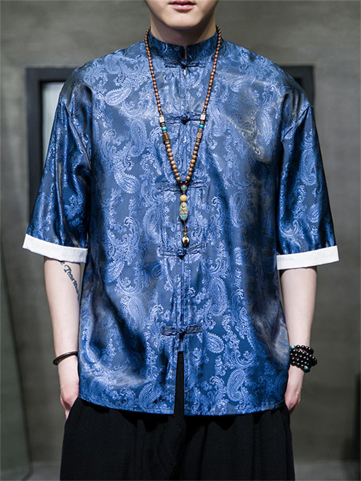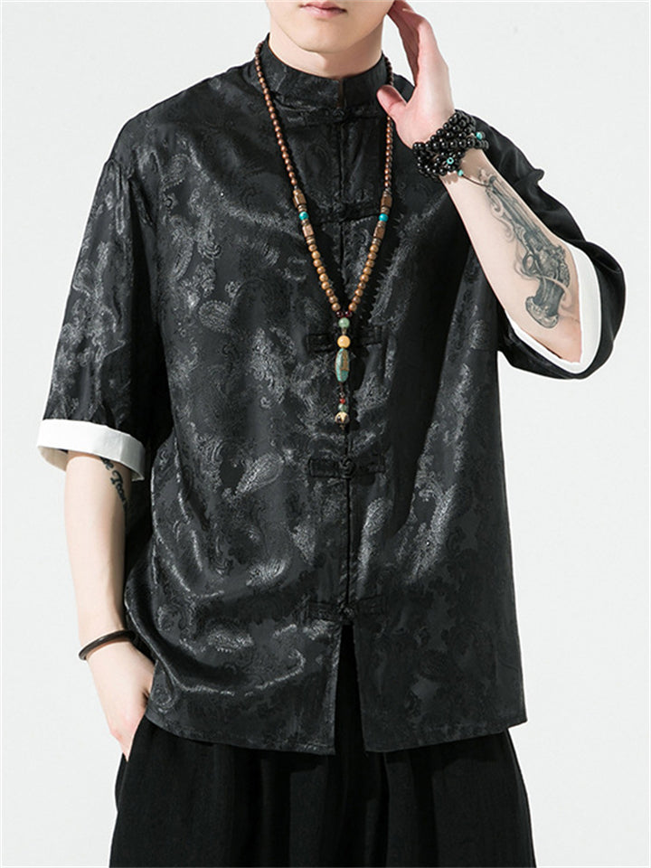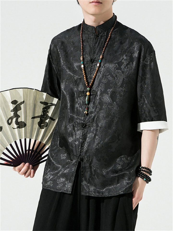 Men's Retro Jacquard Summer Cozy Ice Silk Tang Suit Shirt