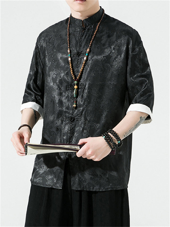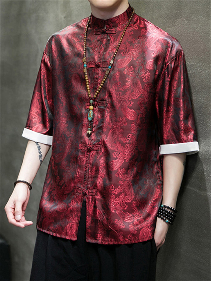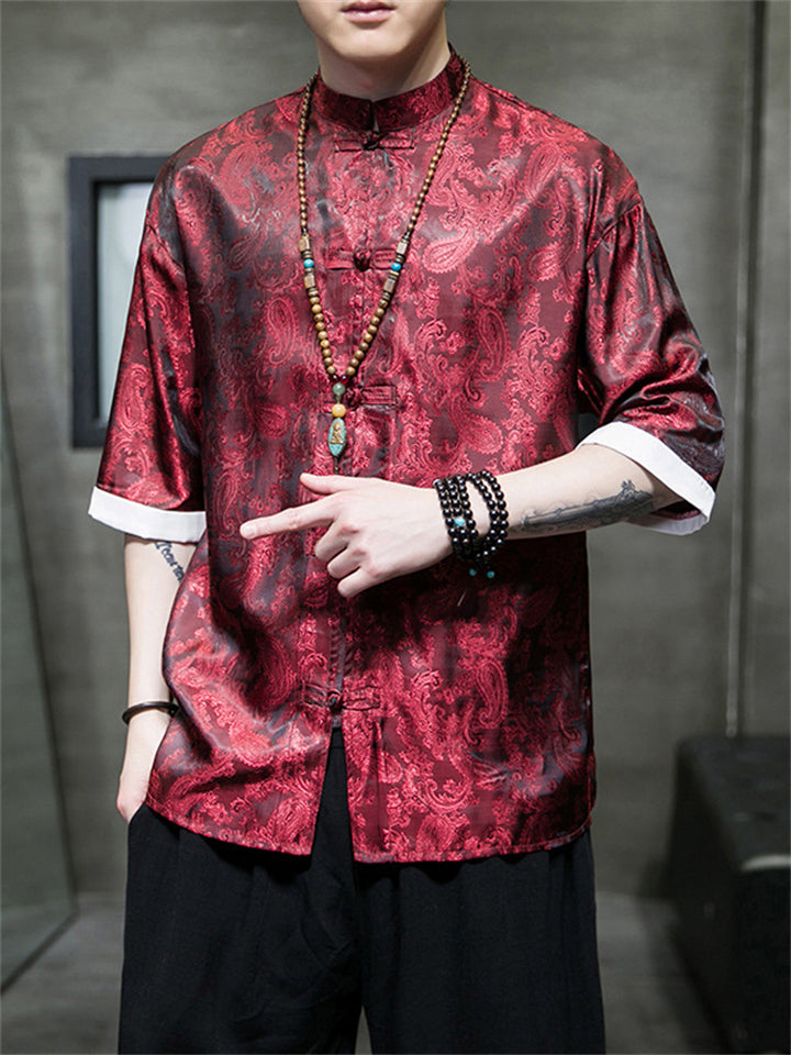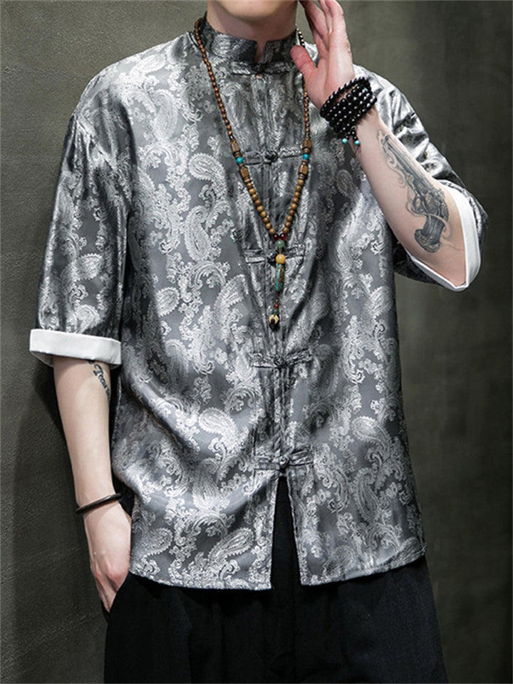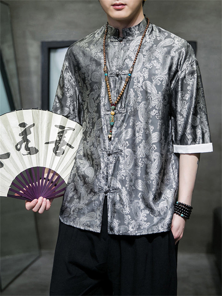 Men's Retro Jacquard Summer Cozy Ice Silk Tang Suit Shirt