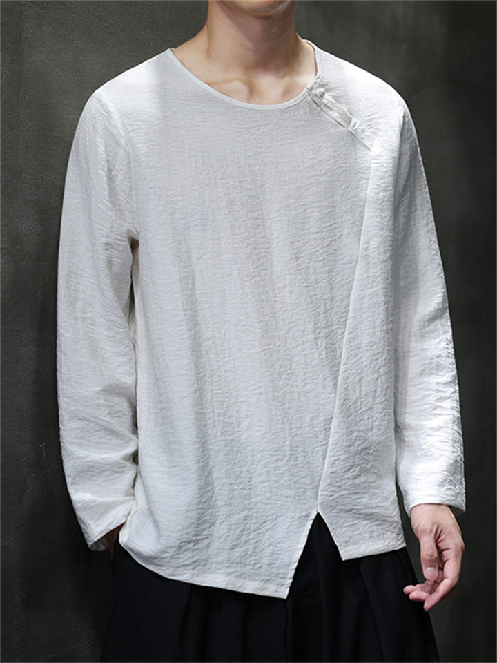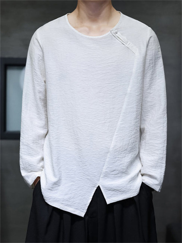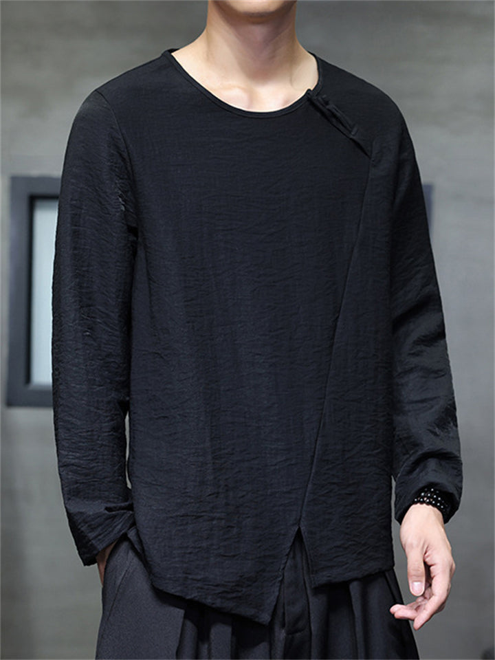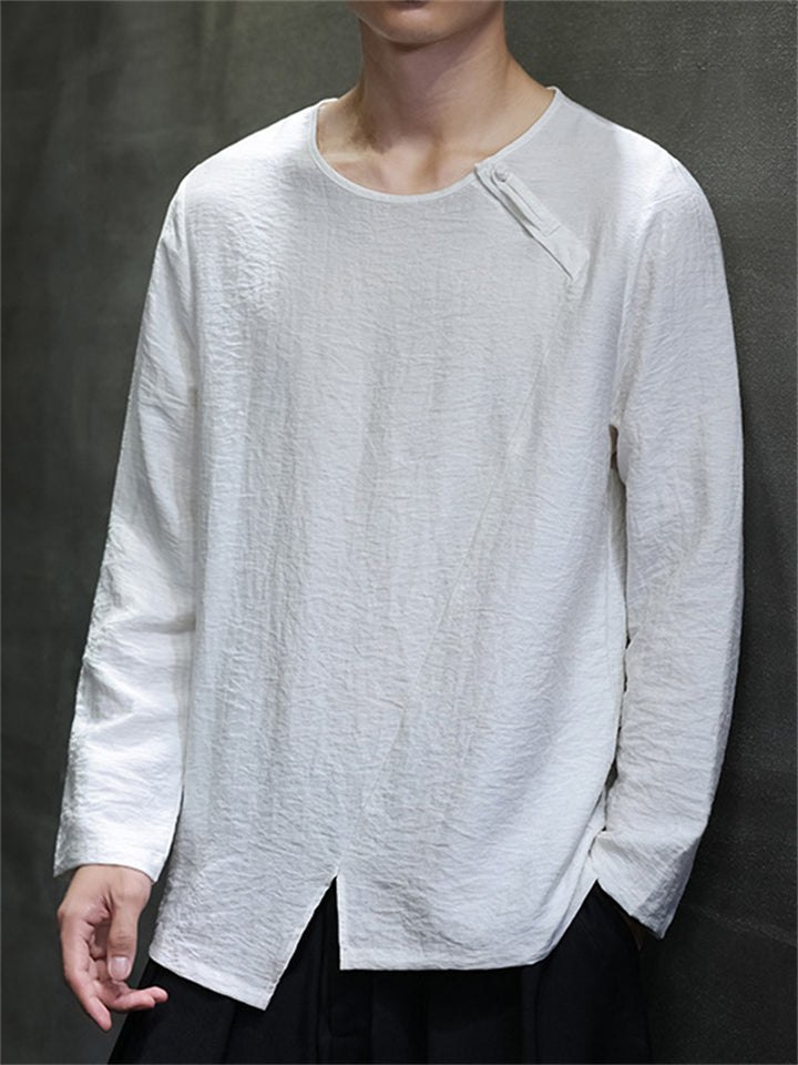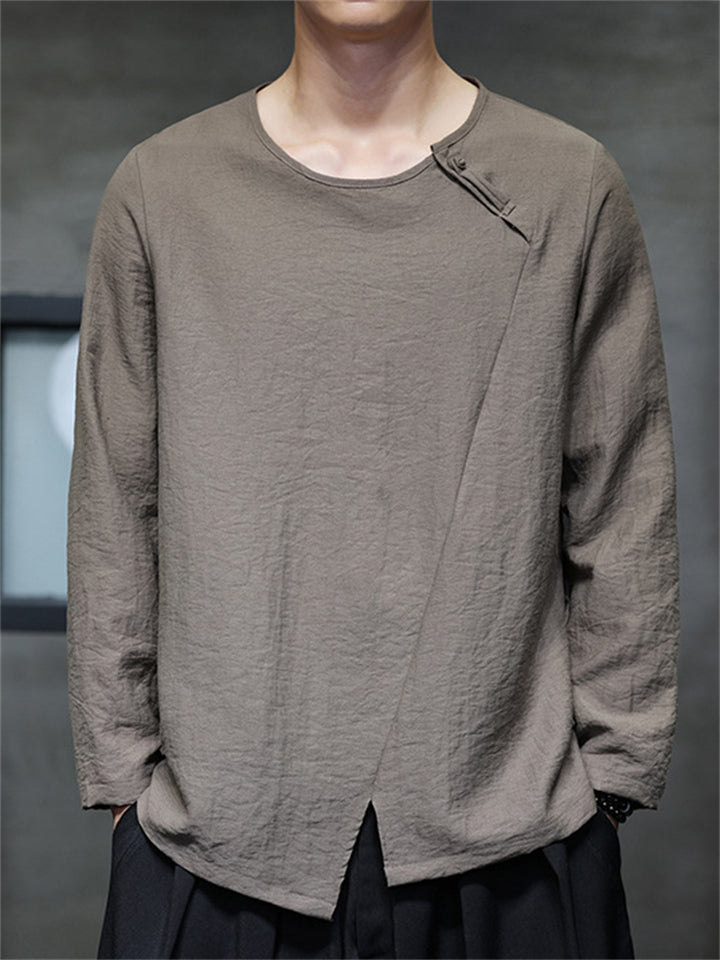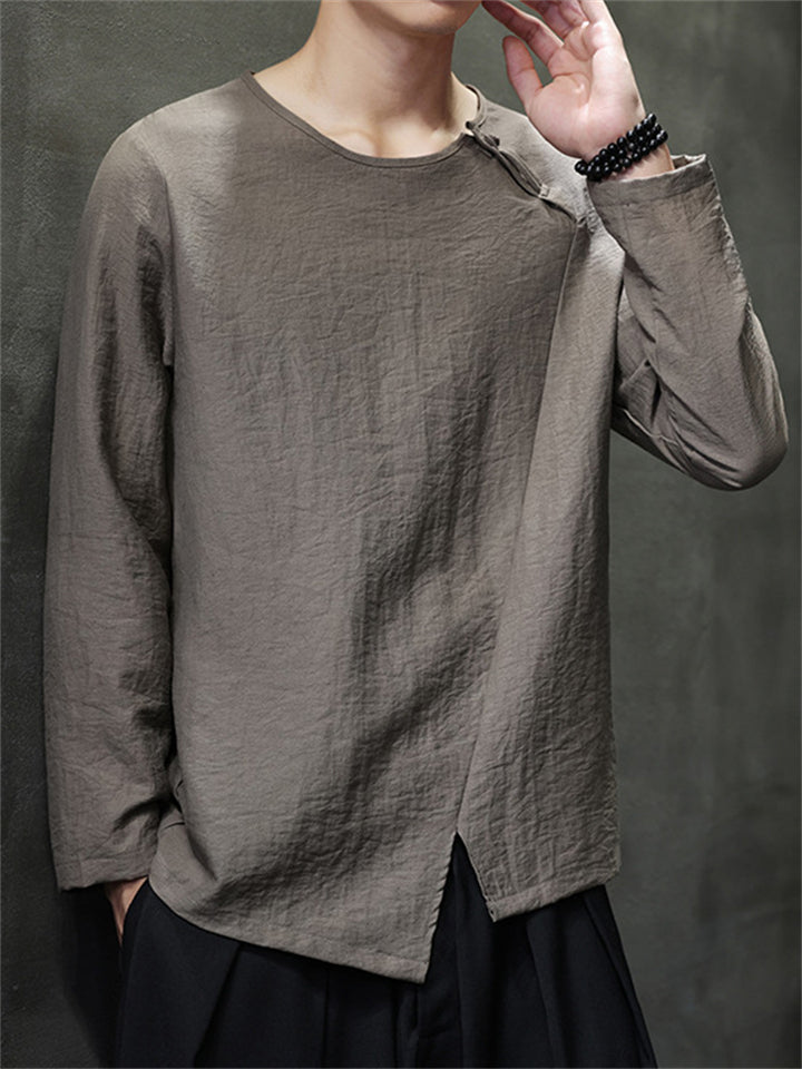 Men's Autumn Solid Color Zen Style Pullover Long Sleeve Shirts