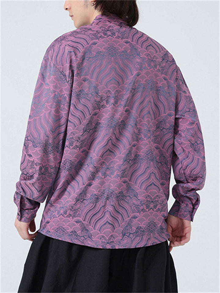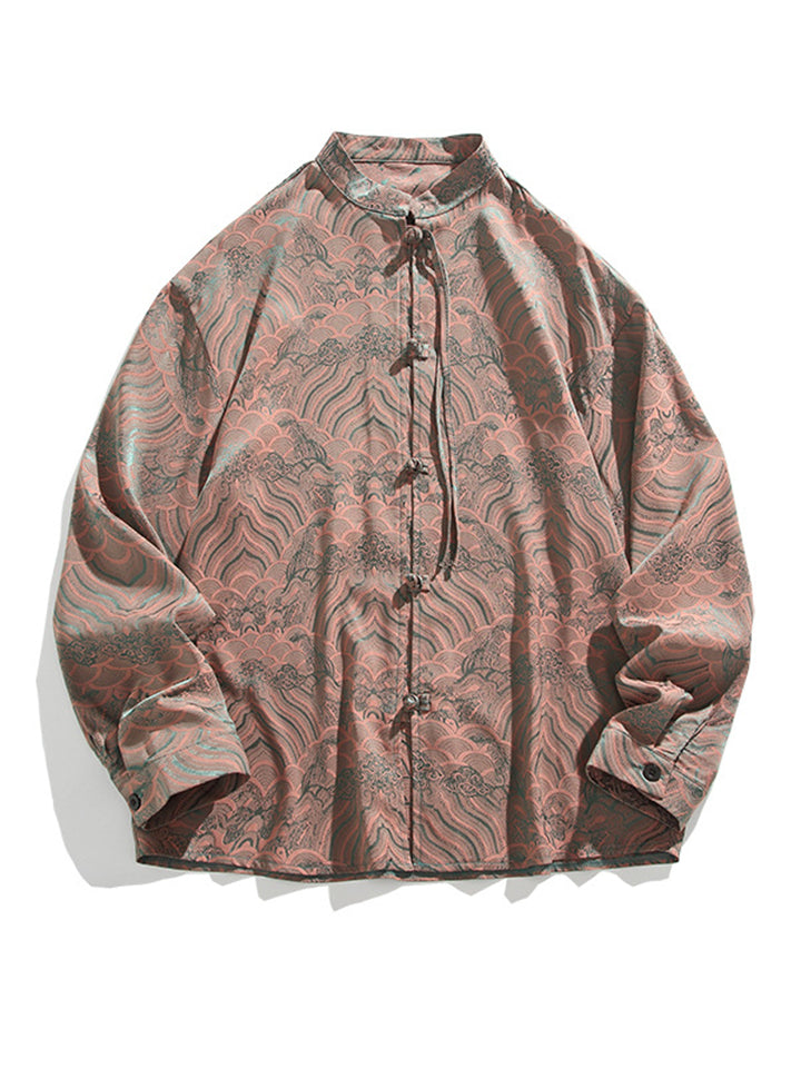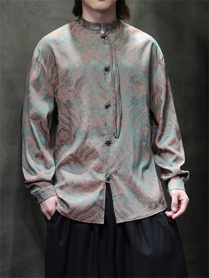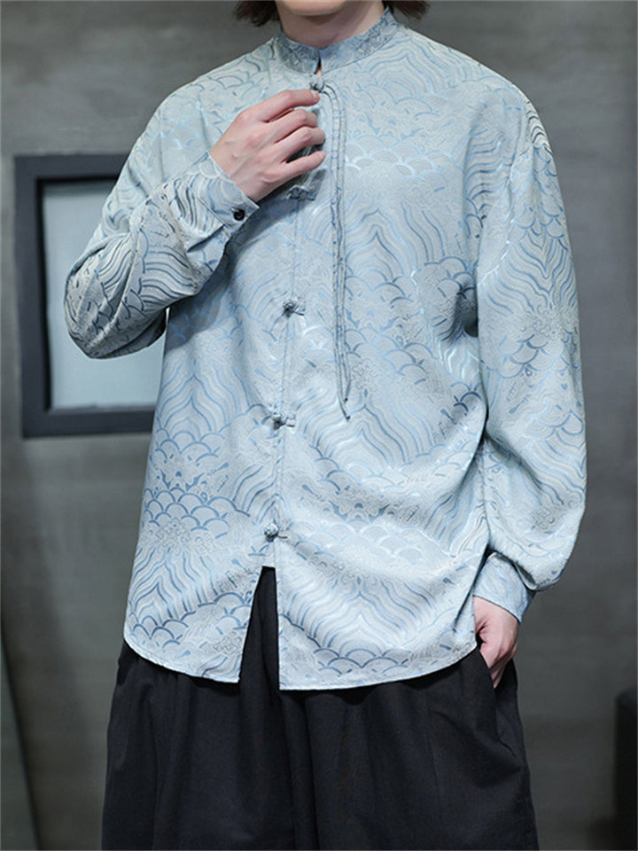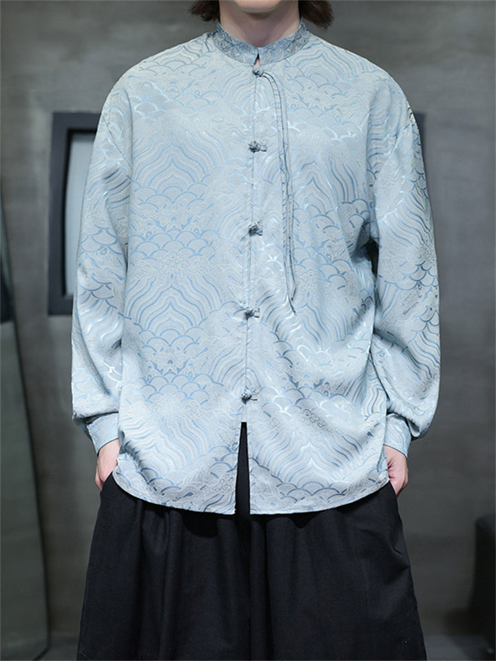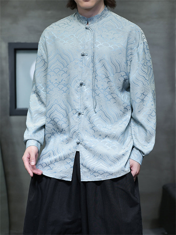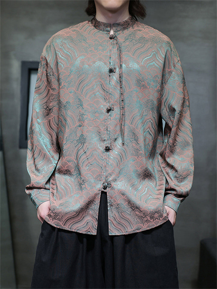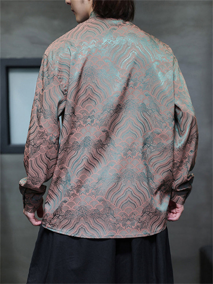Men's River Cliff Waves Jacquard Chinese Style Shirts